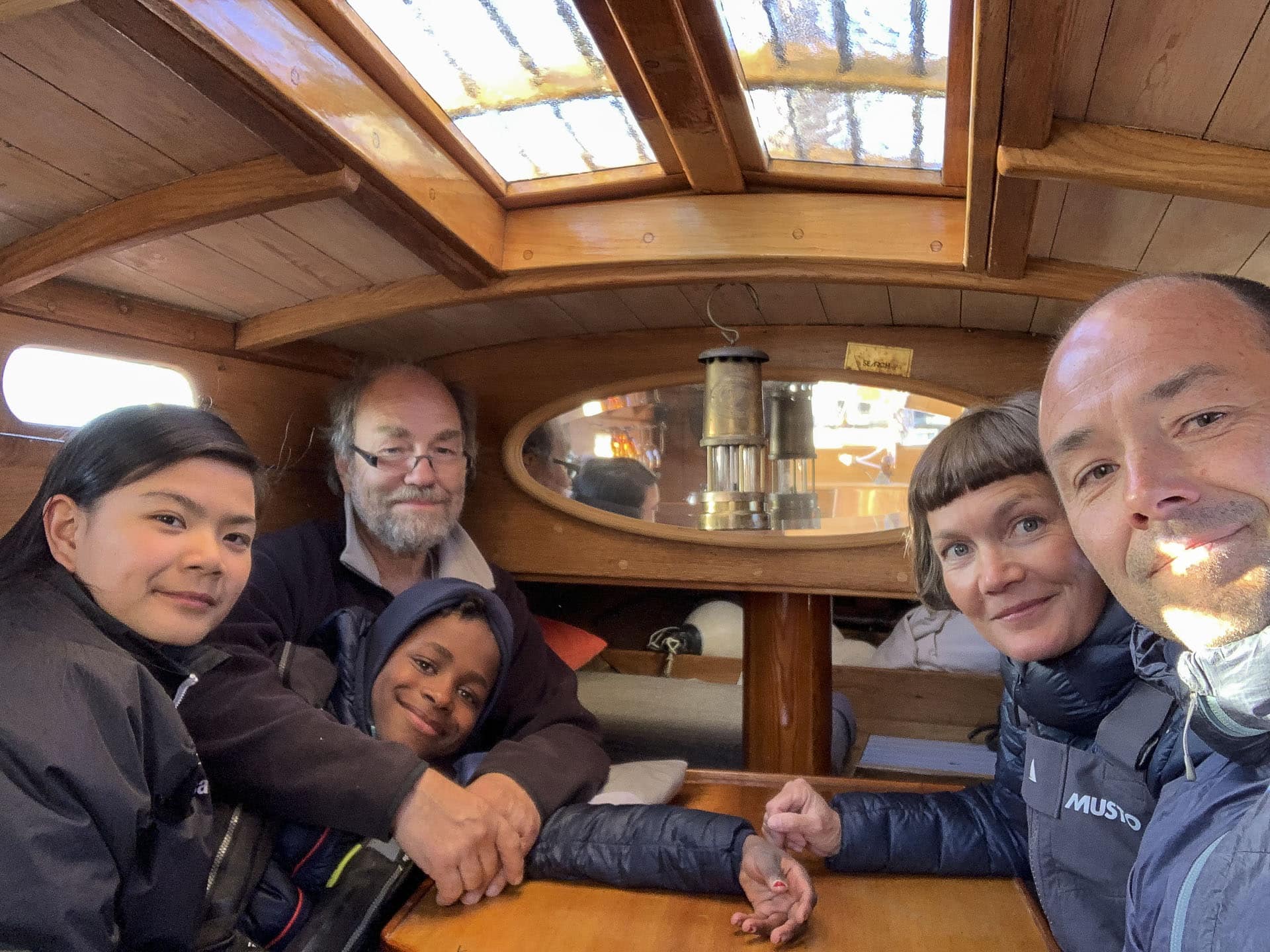 Hela familjen med farfar Hans i hörnet till vänster innan incidenten. Foto: Ulf Aronsson (Hans på akterskeppet) övrigt, privat.