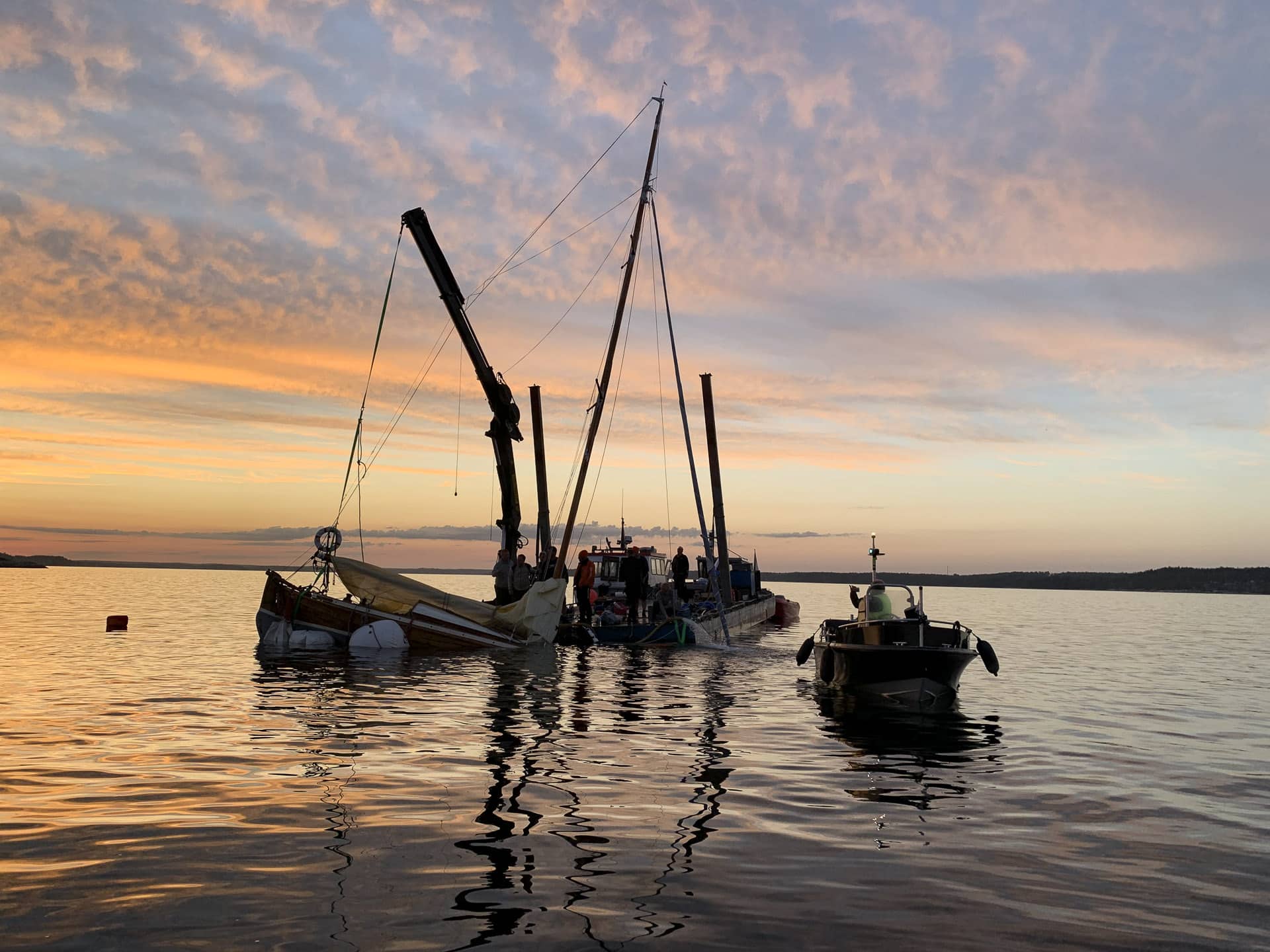 Det krävs rätt teknik och stort kunnande för att rädda en över 100-år gammal kulturskatt undan havets mörker. Likaså den efterföljande renoveringen, som därtill också tarvar tålamod och tid. Att återställa Lovisa har tagit ägaren Hans Himbert omkring 1 000 arbetstimmar. Foto: privat.