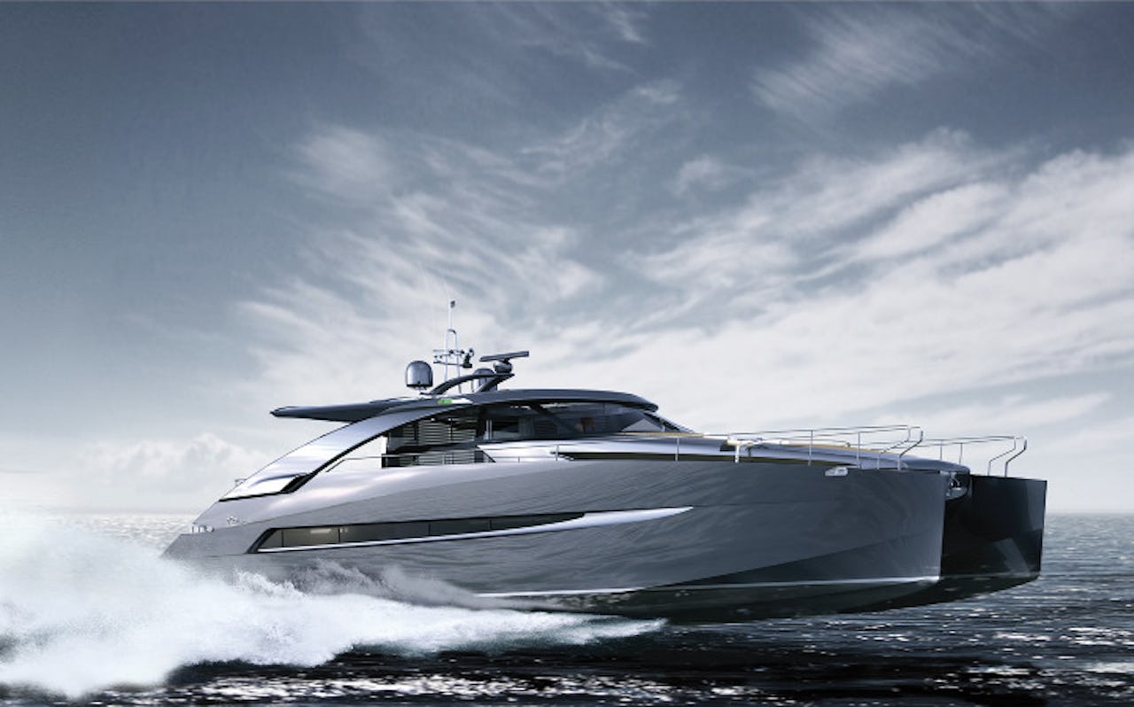 Många stora katamaraner är hiskeligt fula. Men finska designern Juri Karinen har vänt på steken och levererar en stilfull lyxkatta med sportkänsla och många smarta lösningar. Vad sägs om bärplan, dieselhybrid, bränsle- och solceller och Volvo Pentas IPS.