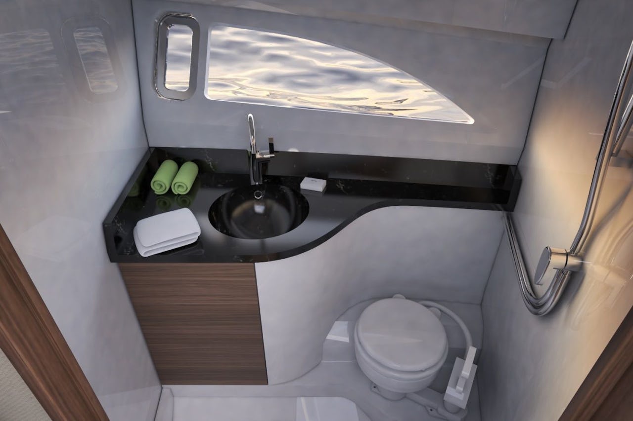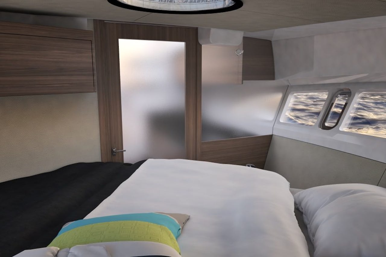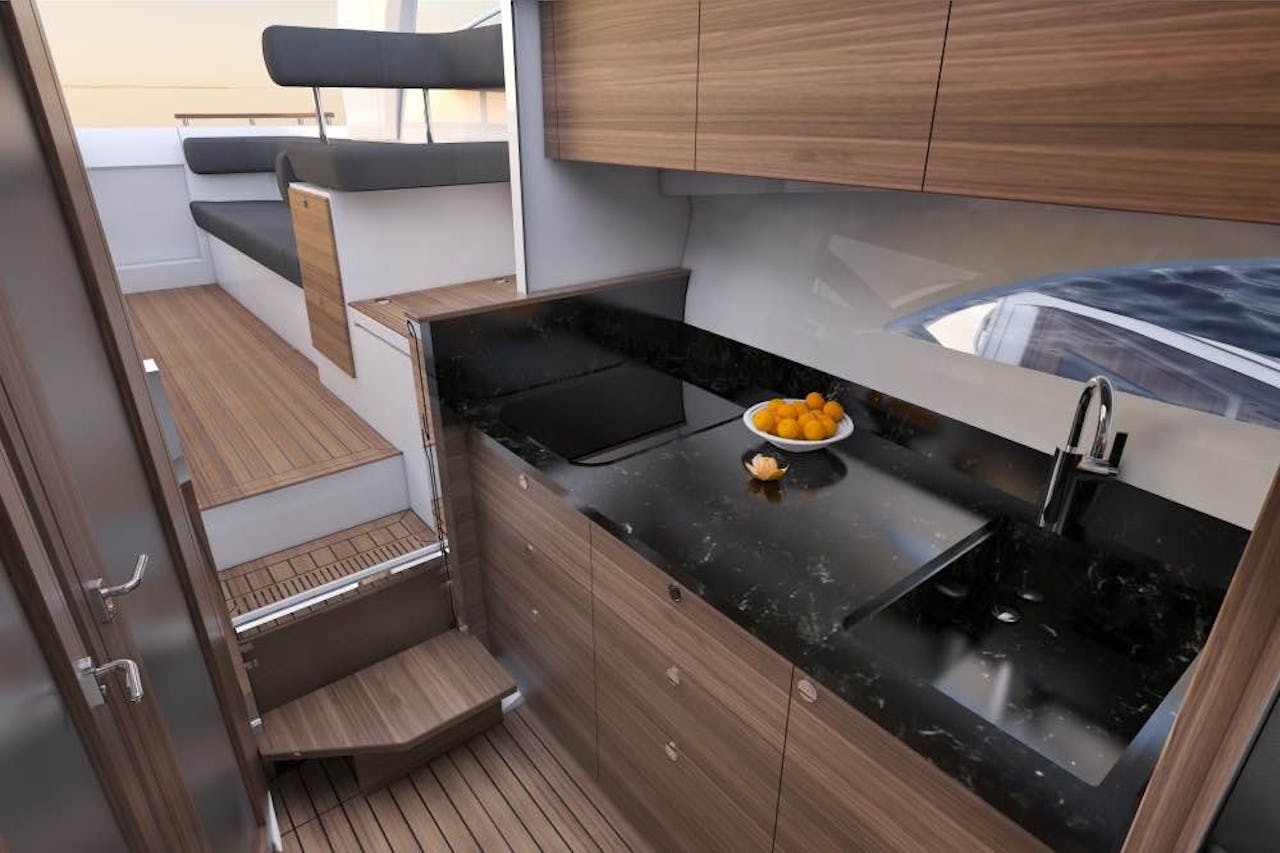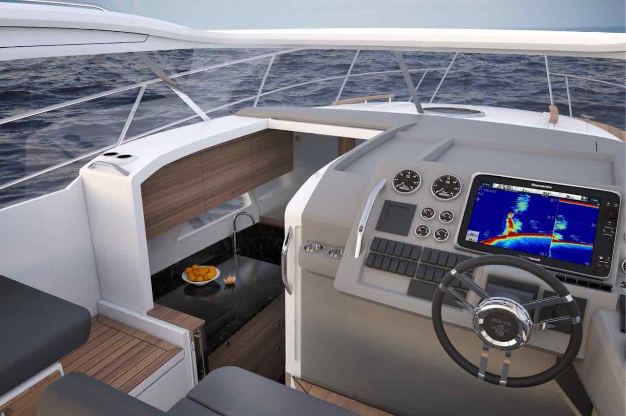 Notervärt är också att sittbrunnen/förarkabinen är fri från nivåskillnader och att det ryms upp till tio personer runt bordet. Det dubbla förarsättet kompletteras av ett enkelsäte på den motsatta sidan. Däremellan är det gott om svängrum.