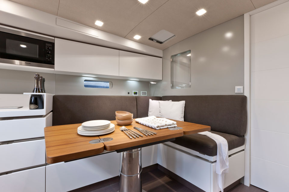 Men – det är bara ett förslag. För den som investerar i en Maxi Dolphin MD51 köper också rätten att själv komma med förslag hur båten ska se ut när det gäller planlösningen. Varför inte en extra hytt med sovplatser för gäster? Eller strunta i kojer helt och ha båten som dagtursbåt? Valet är fritt så länge man hostar upp 1 100 000 euro i grundpris och betalar extra för alla utsvävningar.