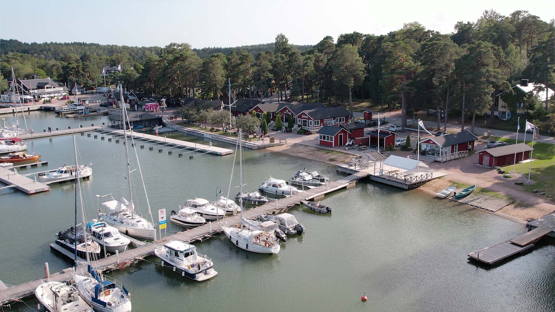 Förutom en av områdets kanske bäst utrustade gästhamnar med cirka 100 platser med tillgång till el och vatten, bränsle septiktömning, bastu, duschar sjömack – och så vidare – finns även sådant som är mindre vanligt i skärgården. Vad sägs till exempel om ett Alko (den finska motsvarigheten till Systembolaget), klädbutiker och såklart även restauranger.