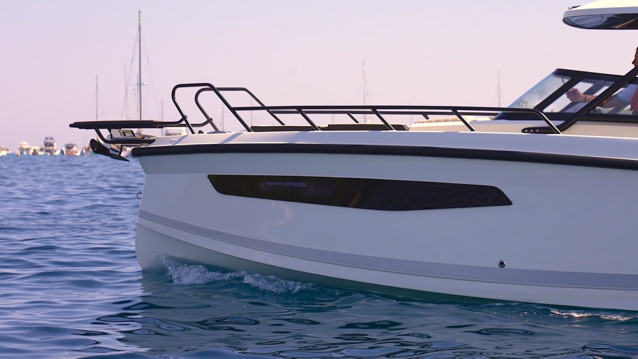 – Ja, jag tyckte tidigt att den kändes lite tung och kanske inte så snabb som jag hade förväntat mig. Det sitter ju gubevars en 400-hästare där bak. Men efter att ha avverkat Mandelieu-la-Napoule till St Tropez, cirka 30 sjömil i stökiga förhållanden, så ser jag det inte som en nackdel. Snarare tvärt om. Den har en inbyggd pondus som gjorde resan förvånansvärt odramatisk.