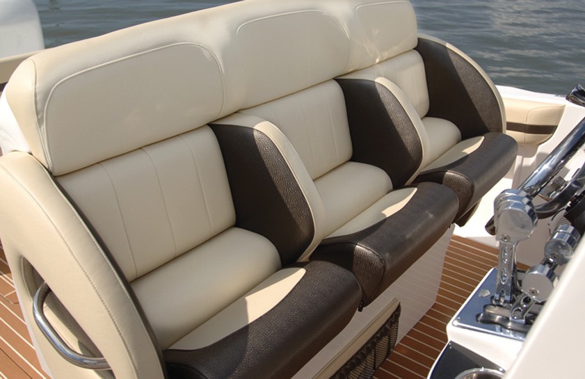 Men det som kommer då är något alldeles extra. I grunden samma båt som Hamnen.se testade i Miami för tre månader sedan (se testen här). Fast då ska den också vara kompletterad med en skyddande T-top.