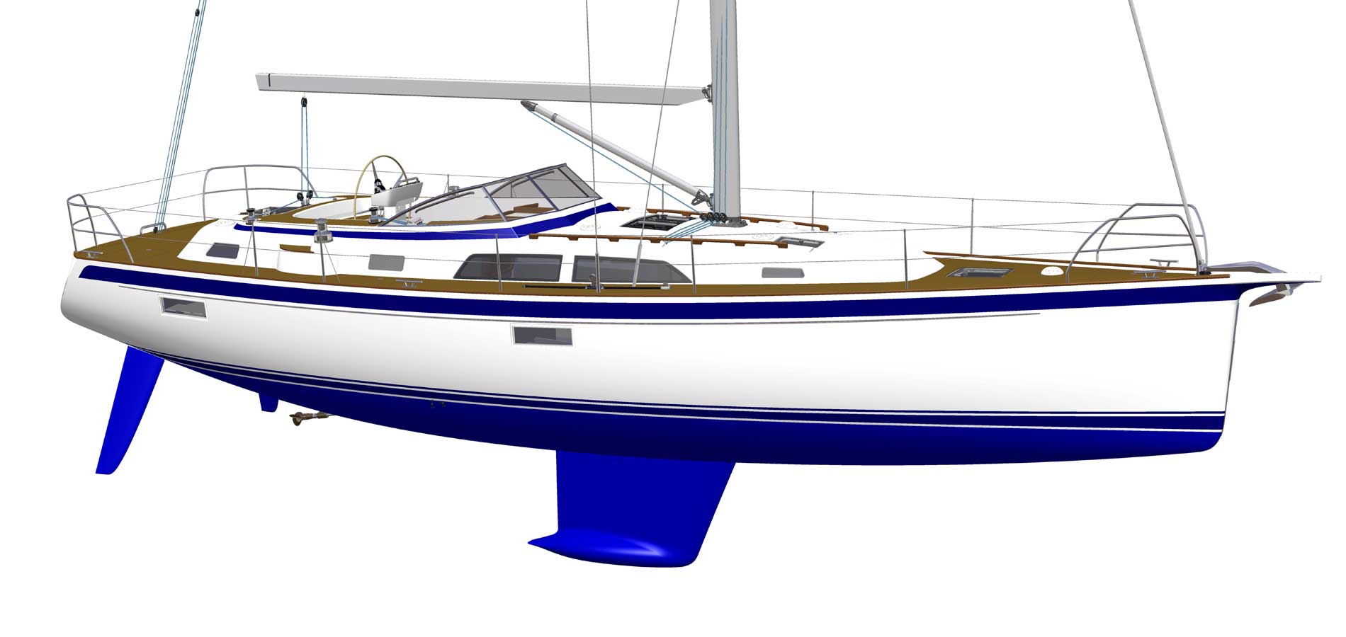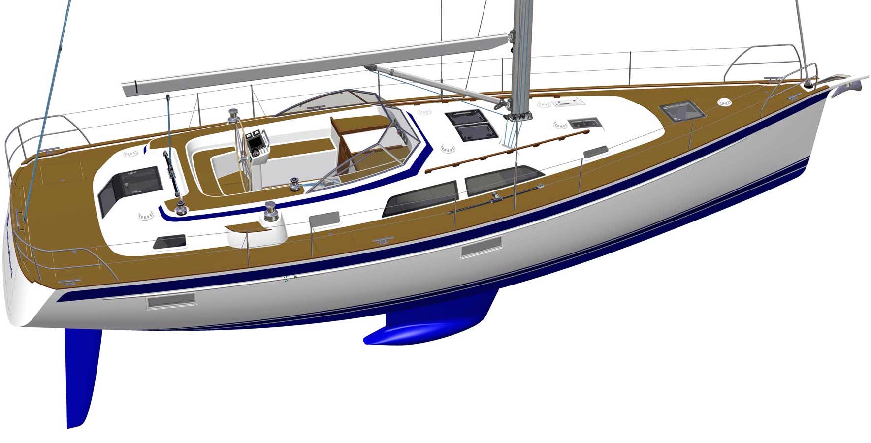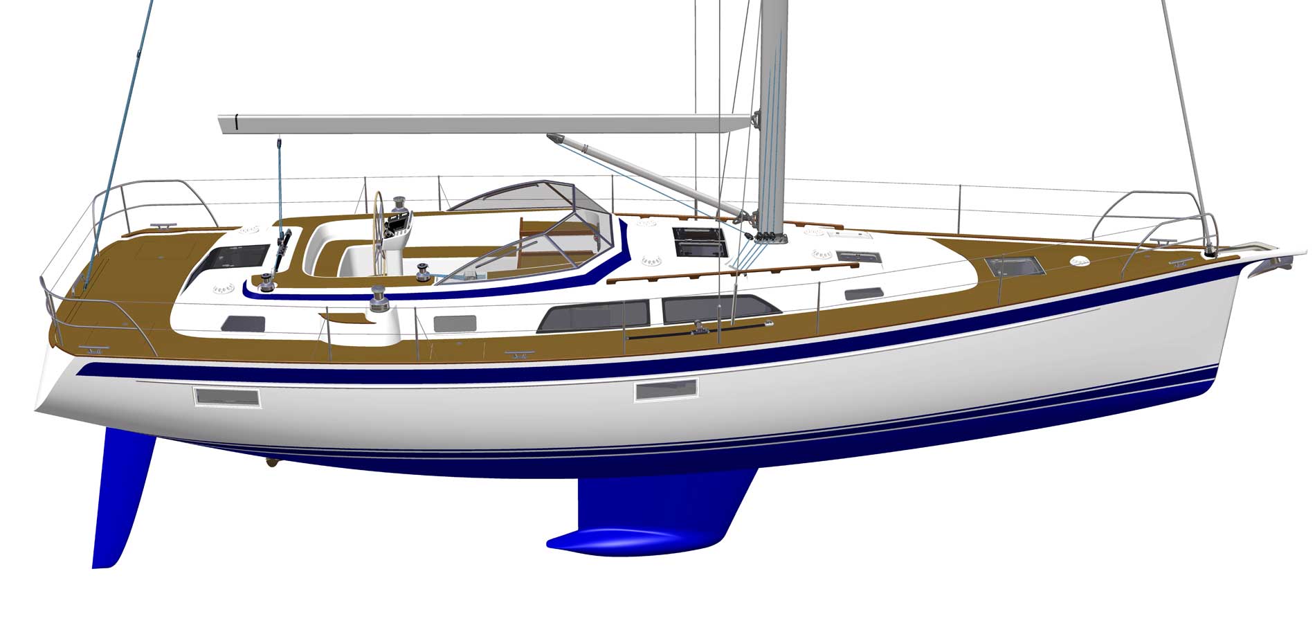 Det som växer fram är Hallberg-Rassy 44 och stor möda läggs på att få fram en båt som både är snabb och enkel att segla. Grundreceptet är det samma som tidigare, med en synnerligen väl skyddad sittbrunn och den klassiska vindrutan.