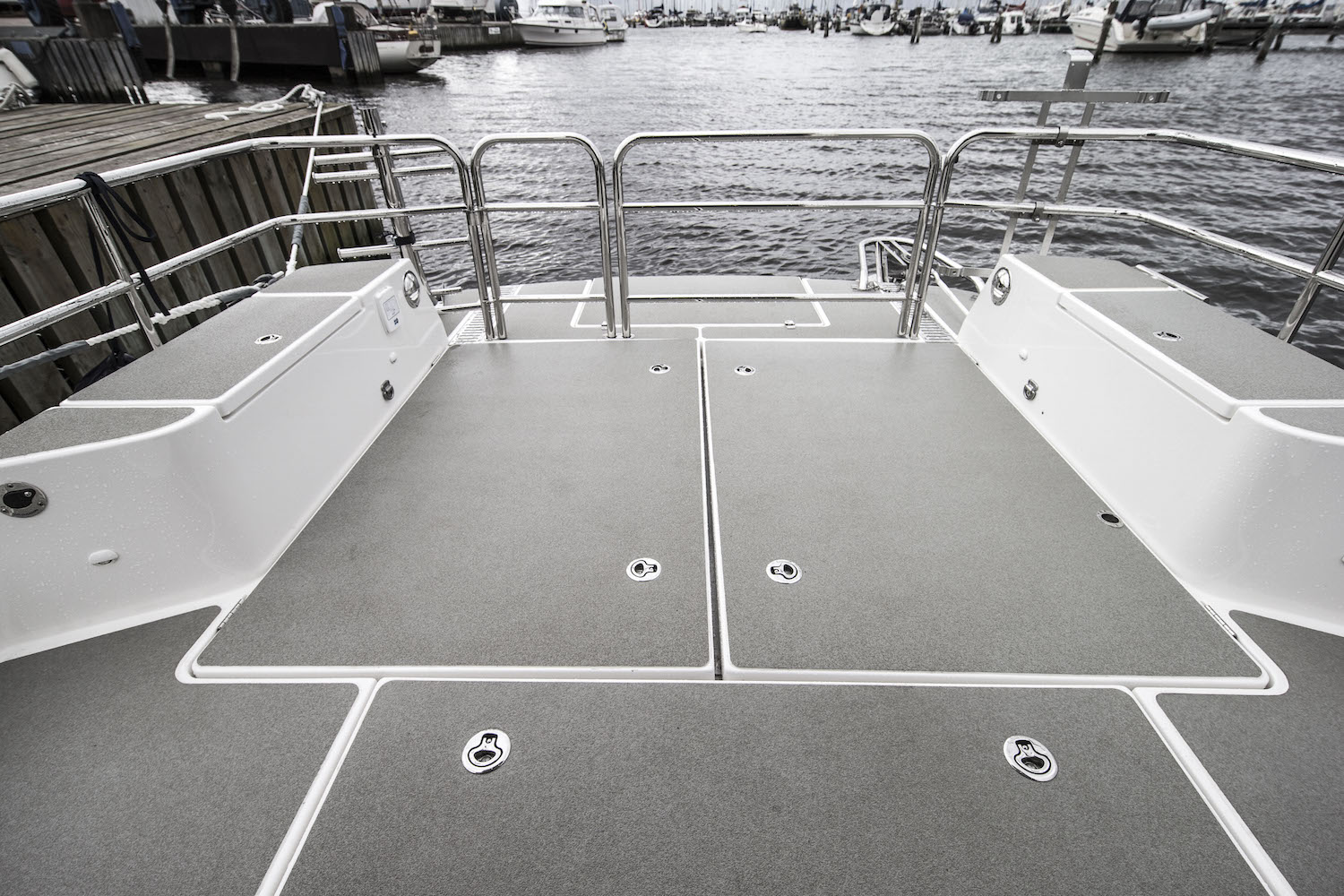 Men mest av allt ger det extra plats ombord. Akterdäcket har två stuvar ovan däck och ytterligare en under en lucka i durken. I övrigt är akterdäcket helt öppet för mesta möjliga arbetsyta.