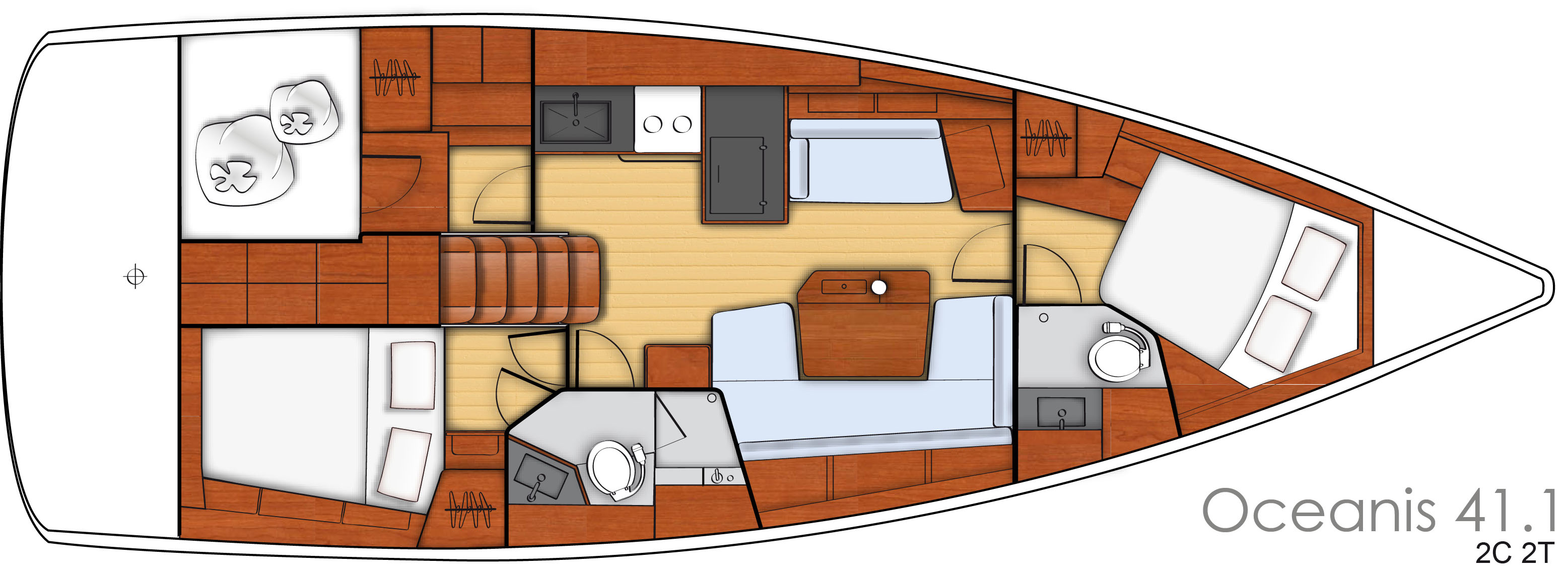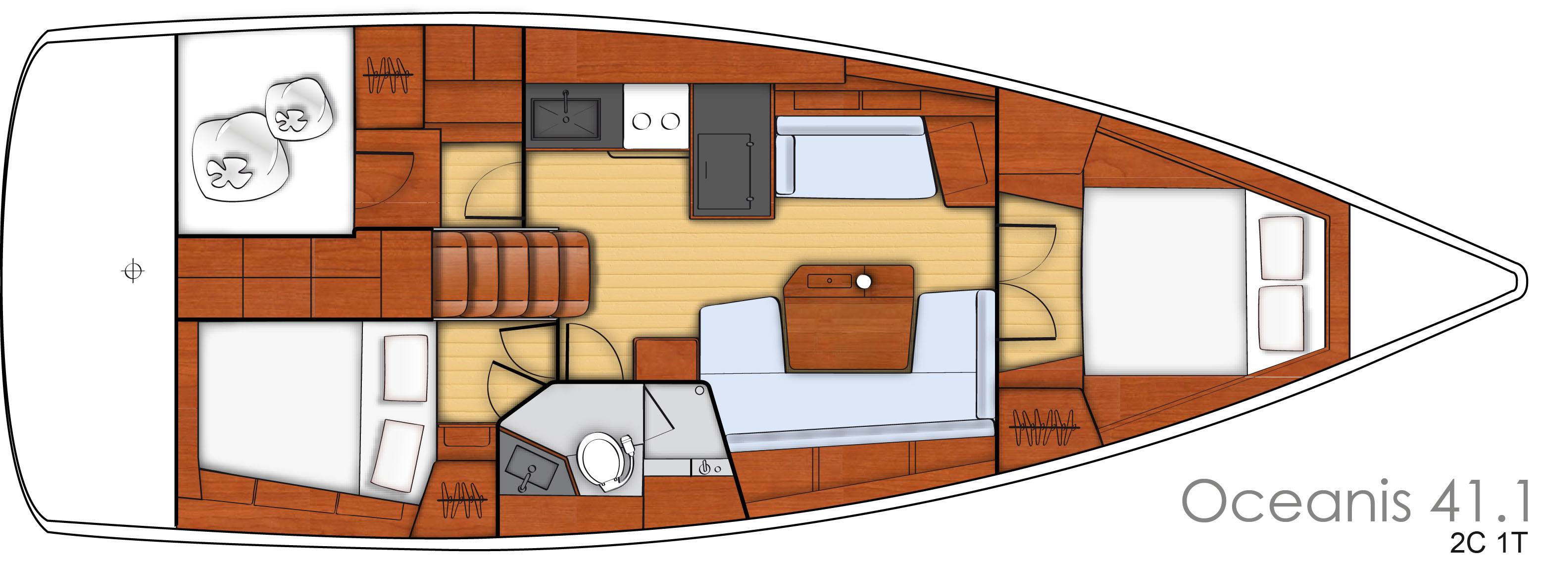 Intet nytt när det gäller själva skrovet. Men i allt annat påstås Oceanis 41.1 överglänsa sin föregångare med nästan samma namn (Oceanis 41).