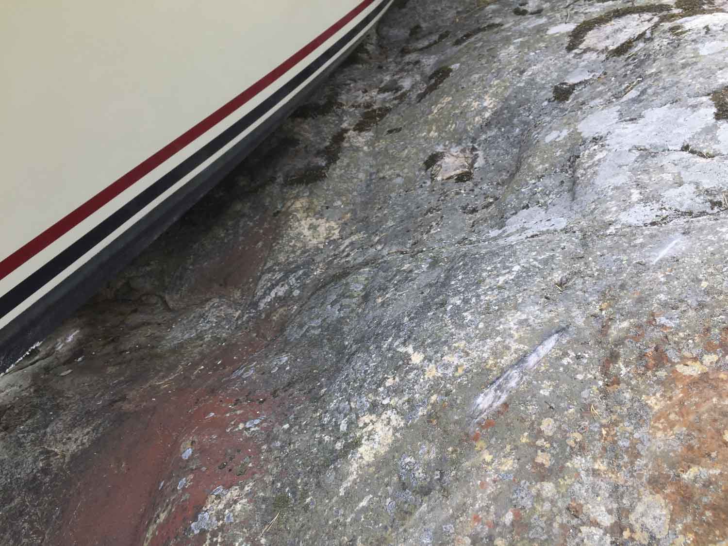 Hamnen.se har besökt platsen och kan konstatera att båten måste har kört i hög hastighet. Den har trots sin stora tyngd torrsatts helt och hållet. Den största skadan är fören som är krossad. Det luktar diesel omkring båten.