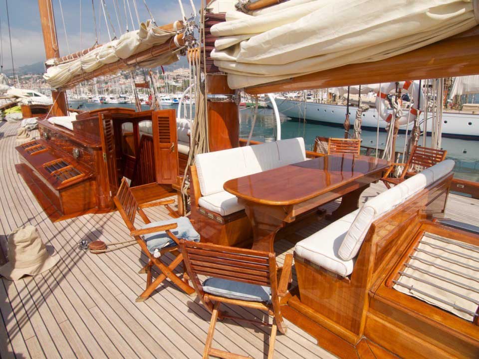 Men det är uppe på däck som Doriana verkligen glänser. Lauritzen använde skutan till kappsegling och än idag ska hon kunna segla väl även om detta är långt ifrån vad man idag skulle kalla för en kappseglingsbåt. Men med sina stora flushade däck i teak lär ingen kunna vända blicken åt ett annat håll.