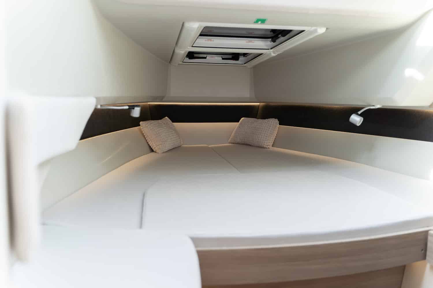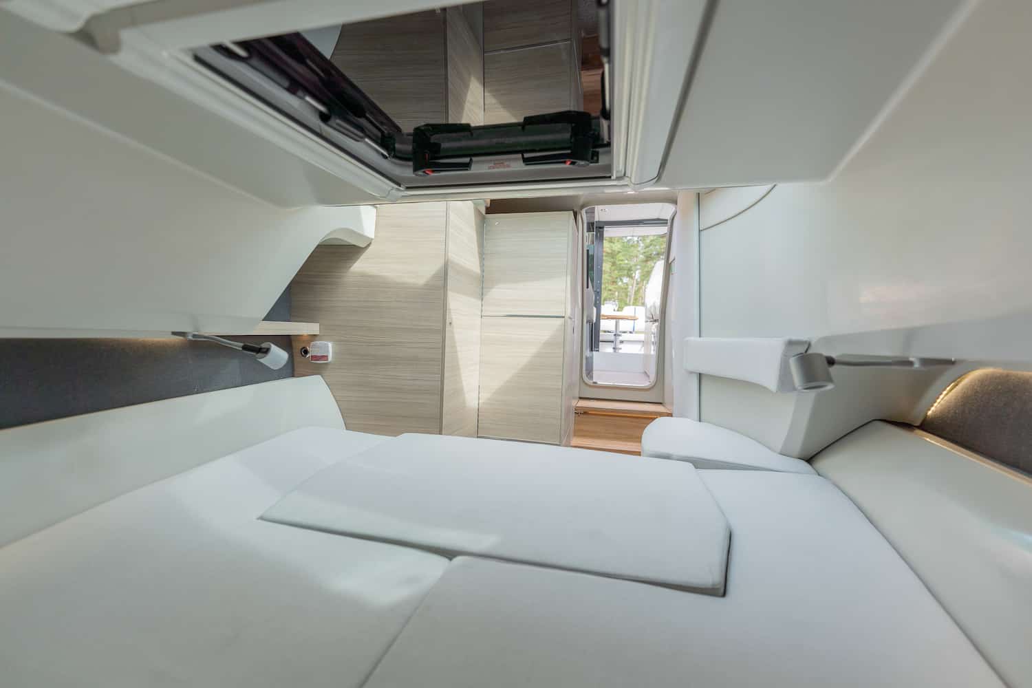 Nej, det som utmärker Saxdors hyttbåt är snarare planlösningen och layouten samt det faktum att det känns luftigt var man än befinner sig och detta på grund av ett välkommet nytänk gällande just detta.