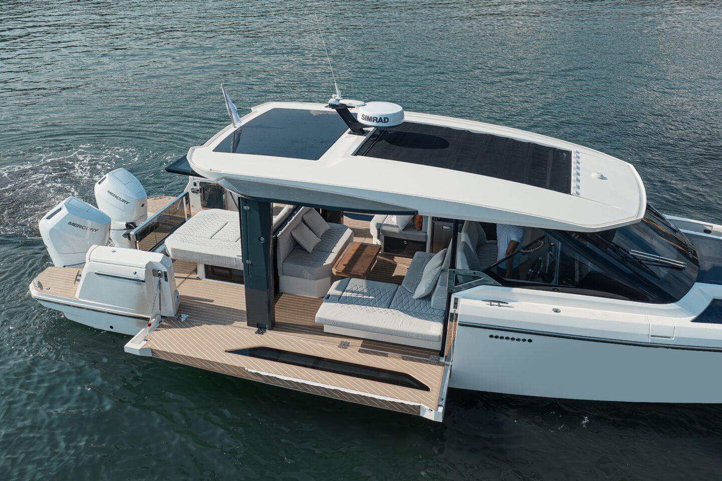 Ta bara planlösningen till exempel där 400 GTO så väl som den lite mer skyddade GTC-modellen svävar i gränslandet mellan att vara en hytt- och en walkaroundbåt, med allt vad det innebär av lättframkomliga och luftiga ytor och passager. Vidare är man mycket mån om att framhålla det välsvarvade skrovet som något alldeles extra. Inte minst när det kommer till effektivitet och pålitliga sjöegenskaper, hur det är med den saken ser vi fram emot att få återkomma till i praktiken. I konceptet ingår också dubbla Mercury-utombordare på 400 hästkrafter vardera.