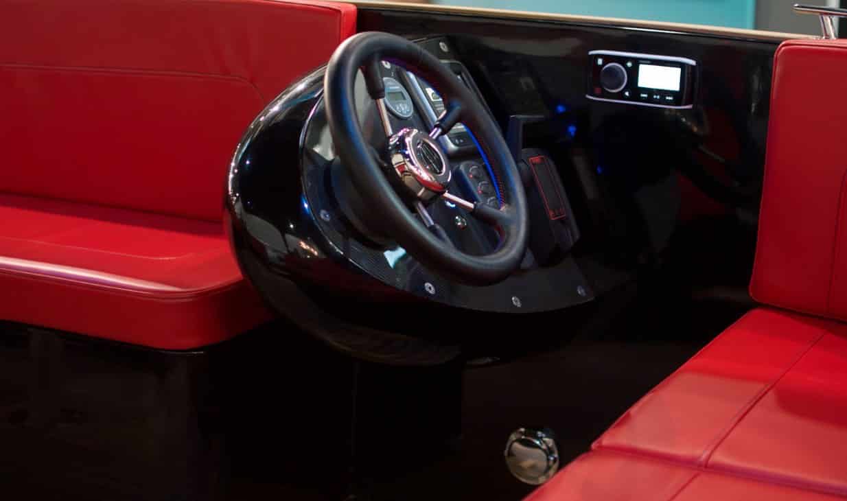 Under motorluckan döljer sig en Torqeedo elmotor som ger motsvarande 8,5 hk och som i det här fallet räcker till en toppfart på 6,5 knop.