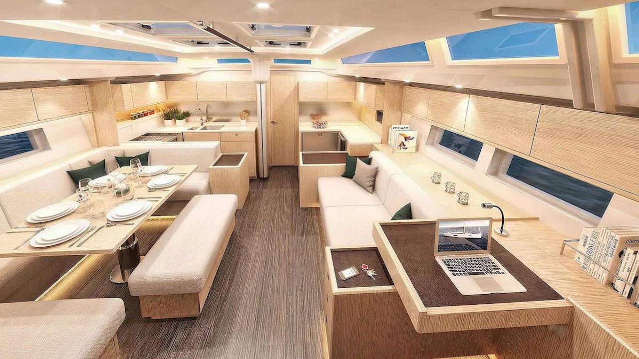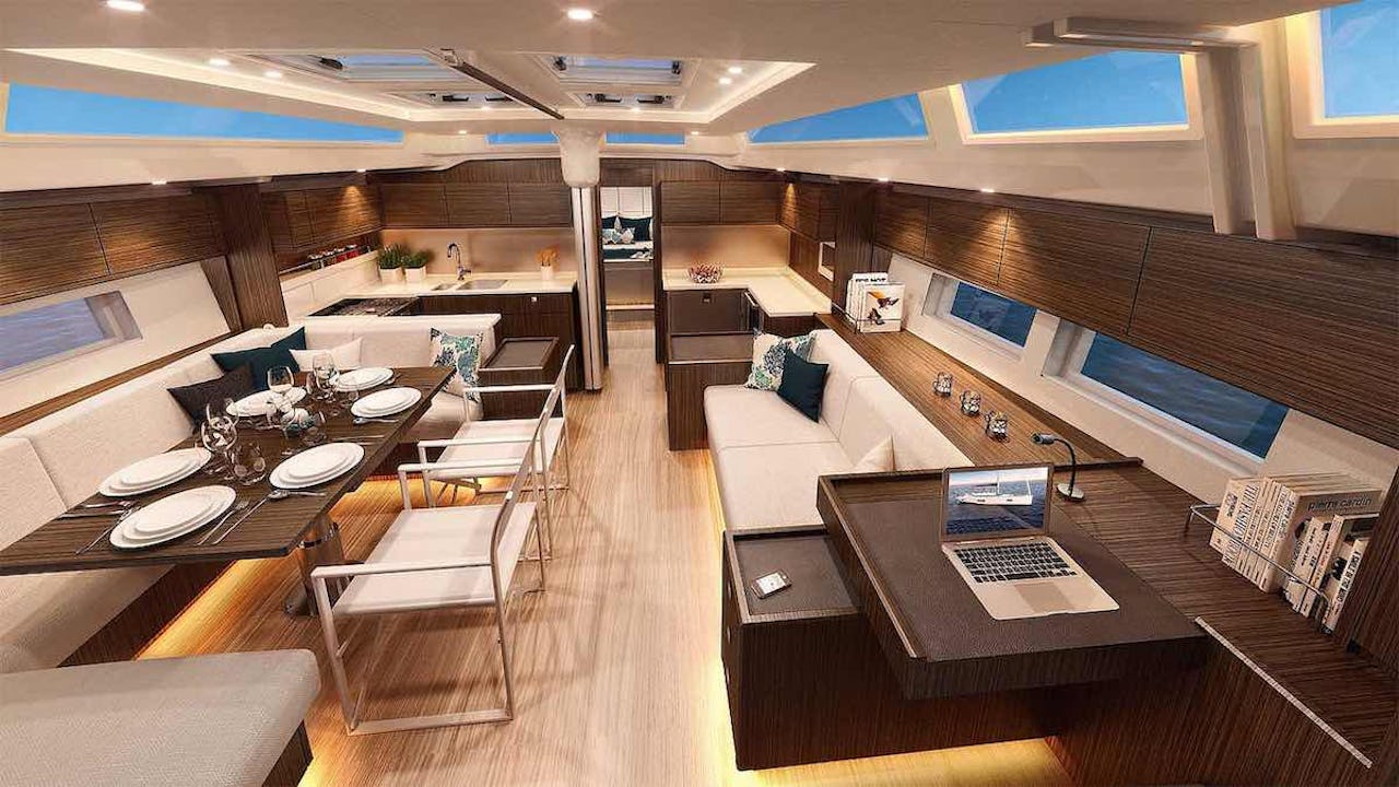 Ta bara salongen till exempel, som tack vare en särdeles snitsig planering får en redan stor båt att kännas ännu större.