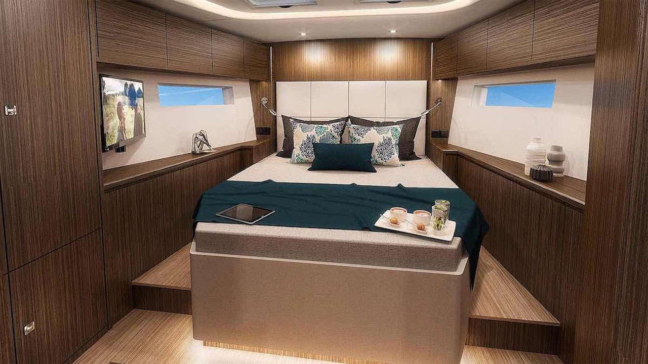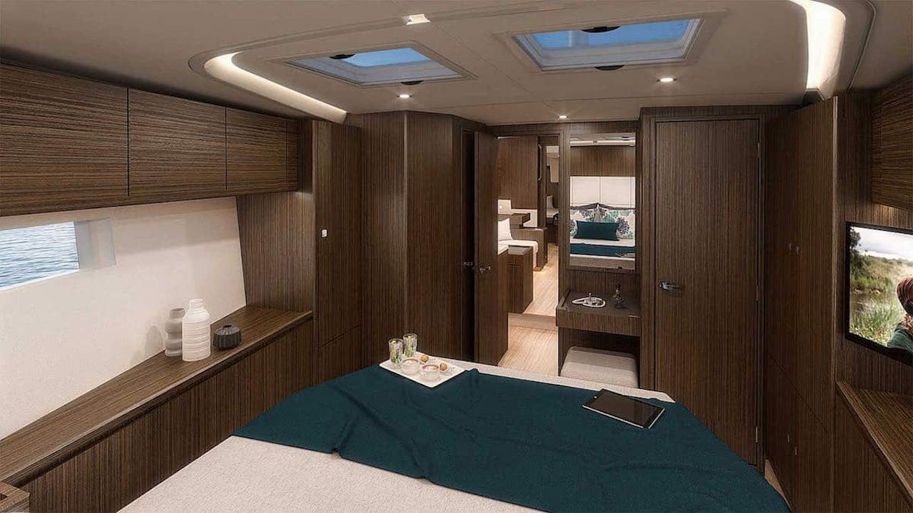 Steg ett är att välja mellan tre, fyra eller rentav fem separata sovhytter. Sedan var det det där med utrymmet längst fram som kan göras till en besättningshytt?