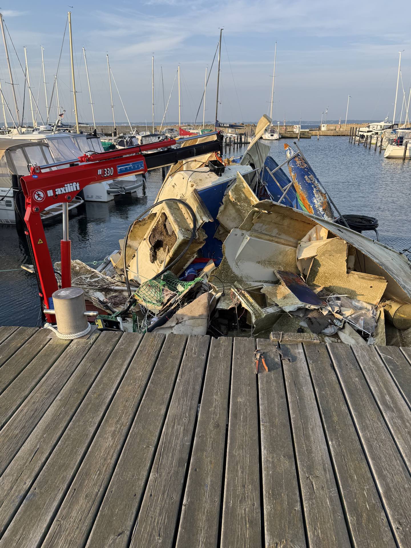 Att smälla på en vanlig grynna är en sak. Att krocka med en före detta flytande dansbana är en annan. De kan de tre danska fritidsseglare, som gjorde just detta, intyga. Speciellt illa är det då denna jätteklump i hårdaste betong mäter hela 38×18 meter och är försedd med allehanda utstickande armeringsjärn och räcken.