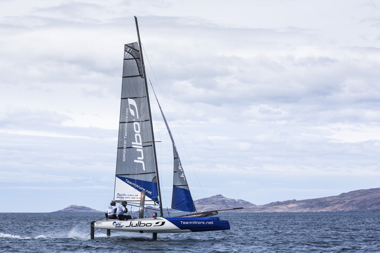 Den här gången gjorde han det alltså i en i sammanhanget extremt liten och snabb båt, närmare bestämt en flygande Nacra 20 FCS. Som gast hade han med sig 35-årige amatörseglaren Johannes Wiebel från Tyskland.