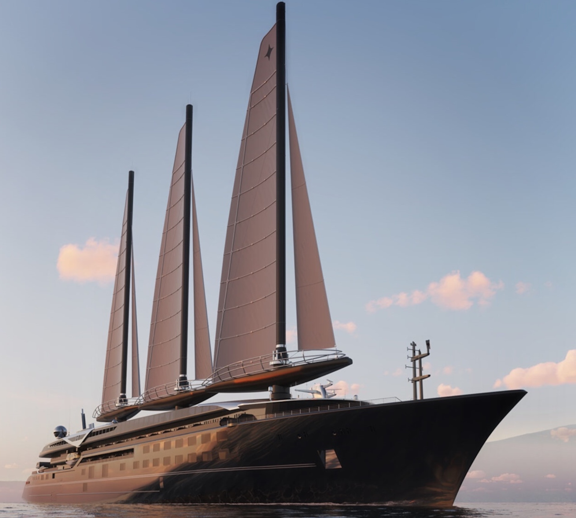 Framdriften sker sålunda med en så kallad SolidSail-teknologi. I det här fallet innebär det tre 100 meter höga vridbara master som bär seglen. För att ytterligare minska sitt ekologiska fotavtryck kompletteras segeldriften av en LNG-motor som kan drivas med vätgas.
