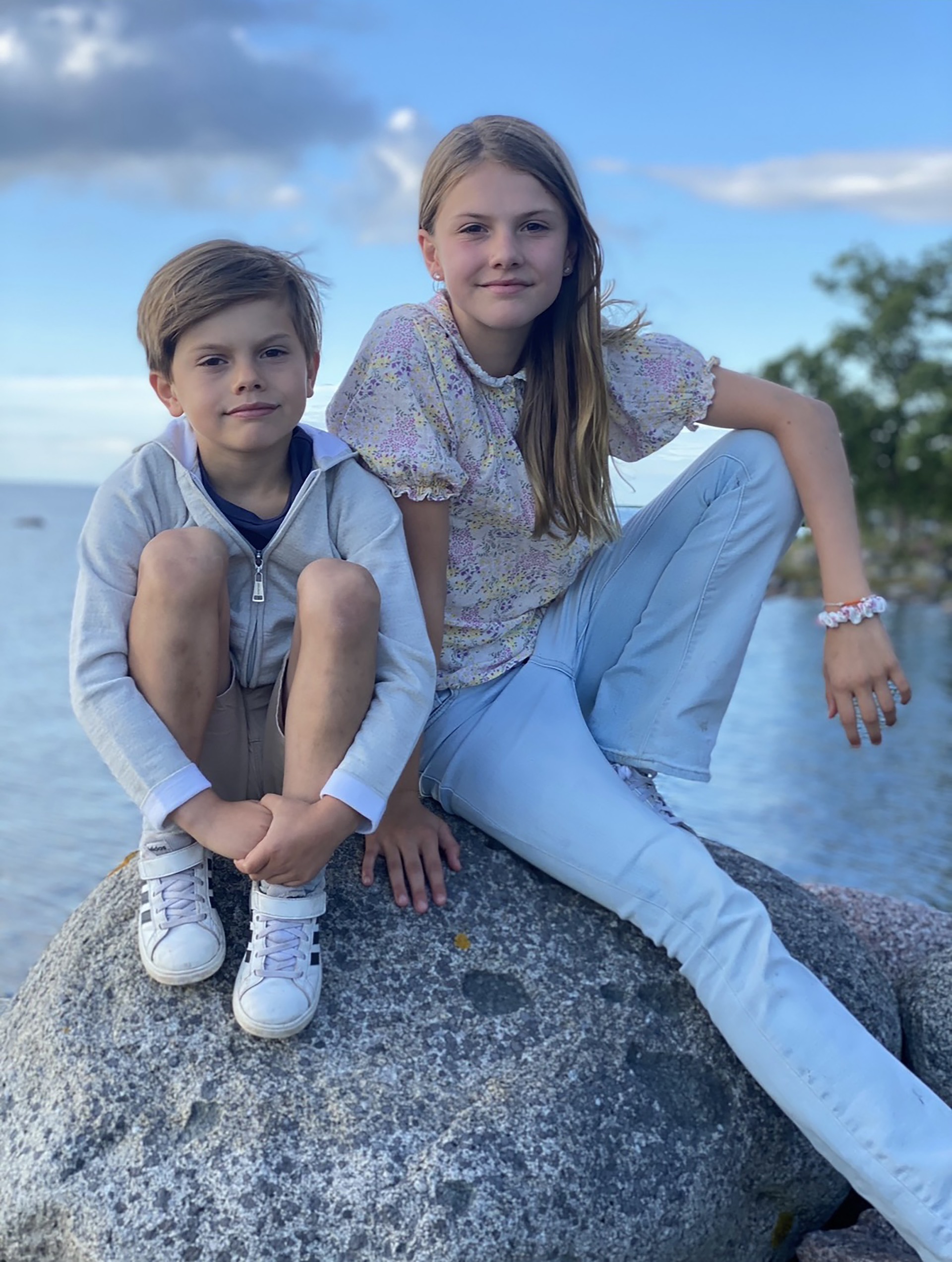 Kronprinsessan Victoria samt Prinsessan Estelle och Prins Oscar i trivsam skärgårdsmiljö. Foto Foto: Raphael Stecksén samt H.K.H. Kronprinsessan/Kungl. Hovstaterna.