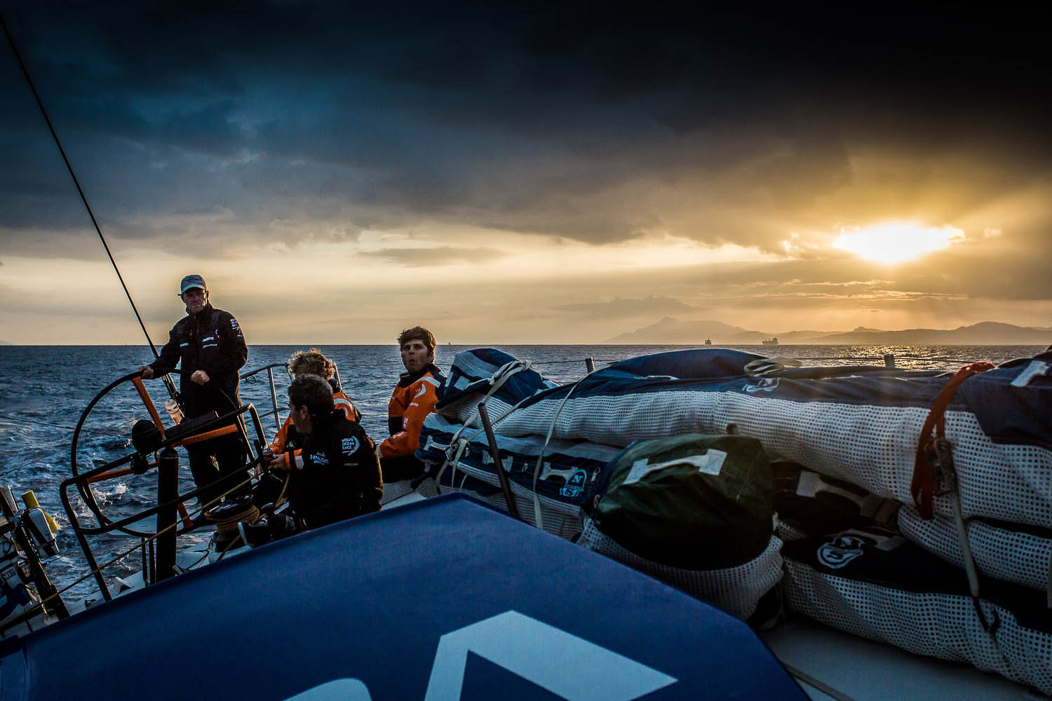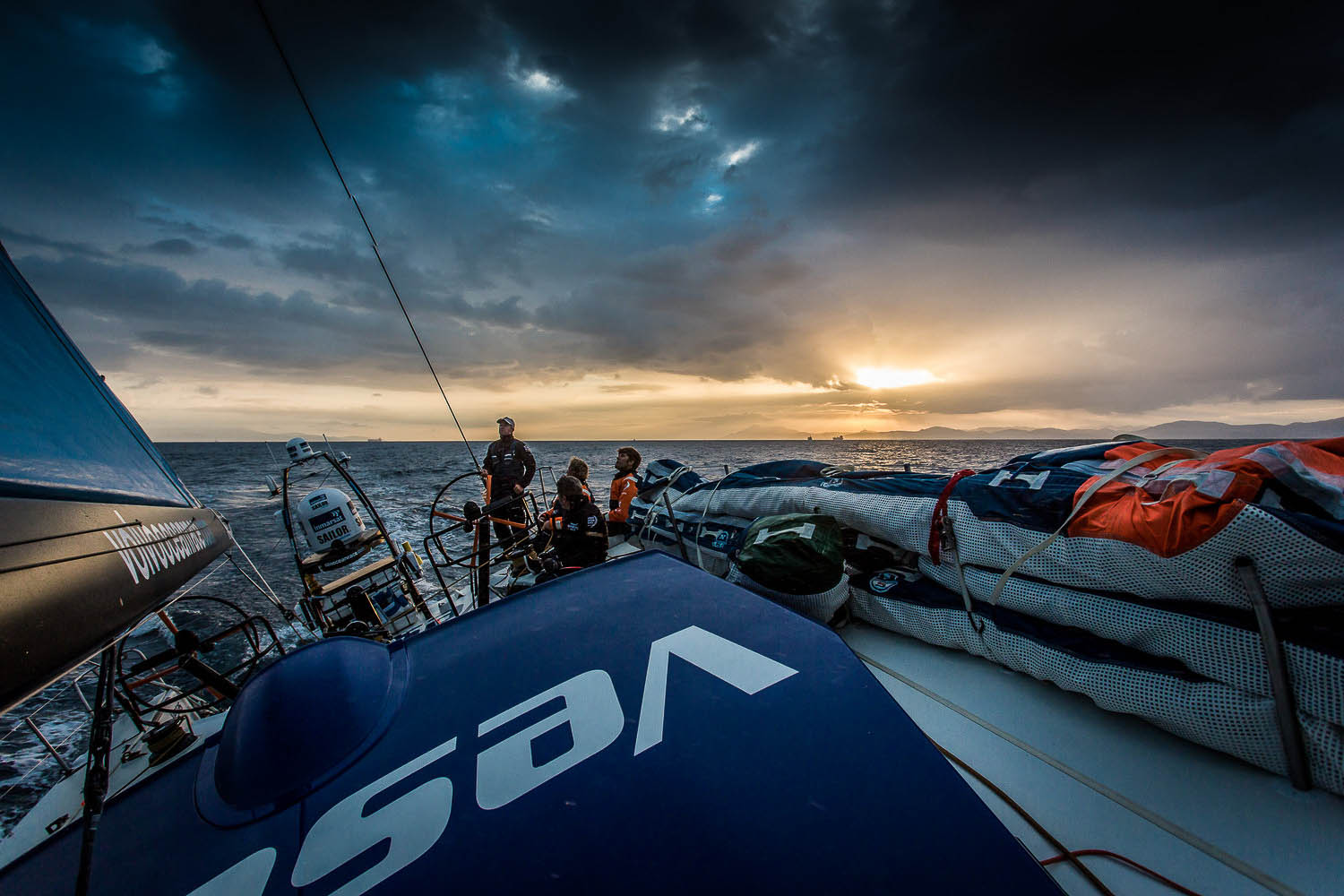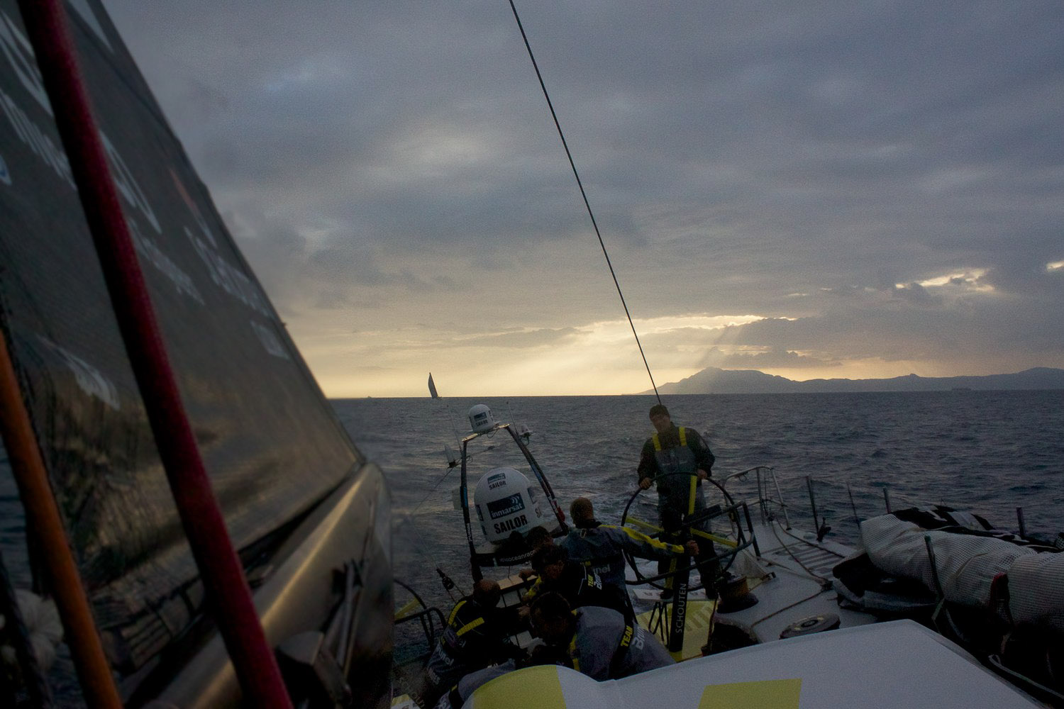 Fältet höll sig i en klunga och det var inte förrän de närmade sig Gibraltar under natten till måndag som det första rycket kom. Team SCA bröt sig loss och valde en nordligare rutt än konkurrenterna. Närmare den spanska kusten hittade de fördelaktiga vindar som gjorde att de passerade Gibraltar först och lämnade medelhavet med en knapp ledning.