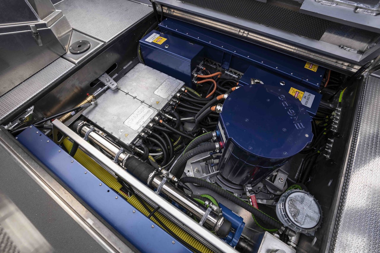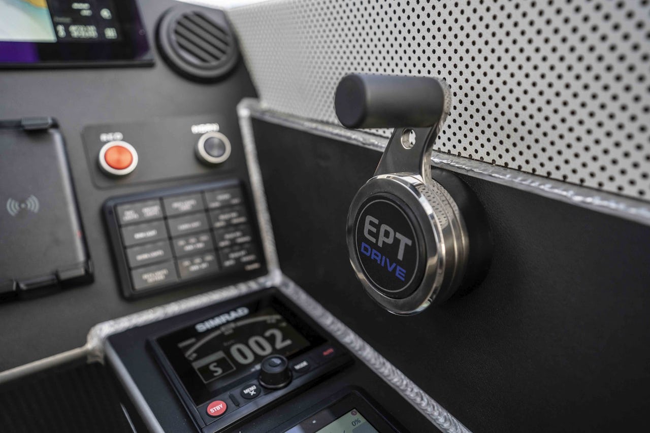 En fantastik fördel med skrov som bygger på LDL-principen (Low Displacement/Length ratio) är att man alltid kan dra av på ”gasen” för att få längre räckvidd. Det finns ingen planingspuckel att förhålla sig till. Skulle man ändå ha räckviddsångest så finns en bensindriven generator som kan ge 45 sjömil extra i räckvidd gömd i aktern.