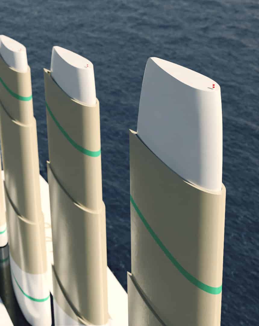 För att nå ned till riktigt låga miljöutsläpp krävs dock ännu mer drastiska åtgärder och i fallet med Oceanbird består hemligheten av fem 80 meter höga ”vingsegel” som sträcker sig 100 meter över vattenlinjen, om man så vill.