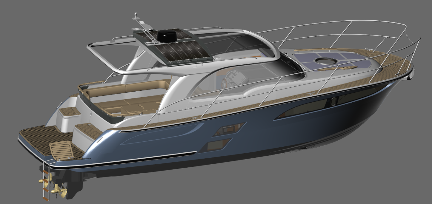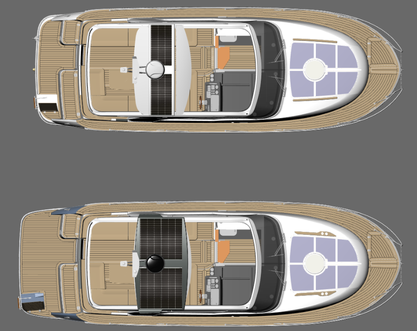 Energiförsörjningen får också ett lyft. Båten ges nu med 220 watt solceller, men för den som vill finns möjligheten att uppgradera till 450 watt. Panelerna är dessutom snyggt integrerade i en kontrastfärgad yta, vilket gör att de blir en del av designen snarare än en kompromiss som så ofta annars blir fallet med stora solcellspaneler.