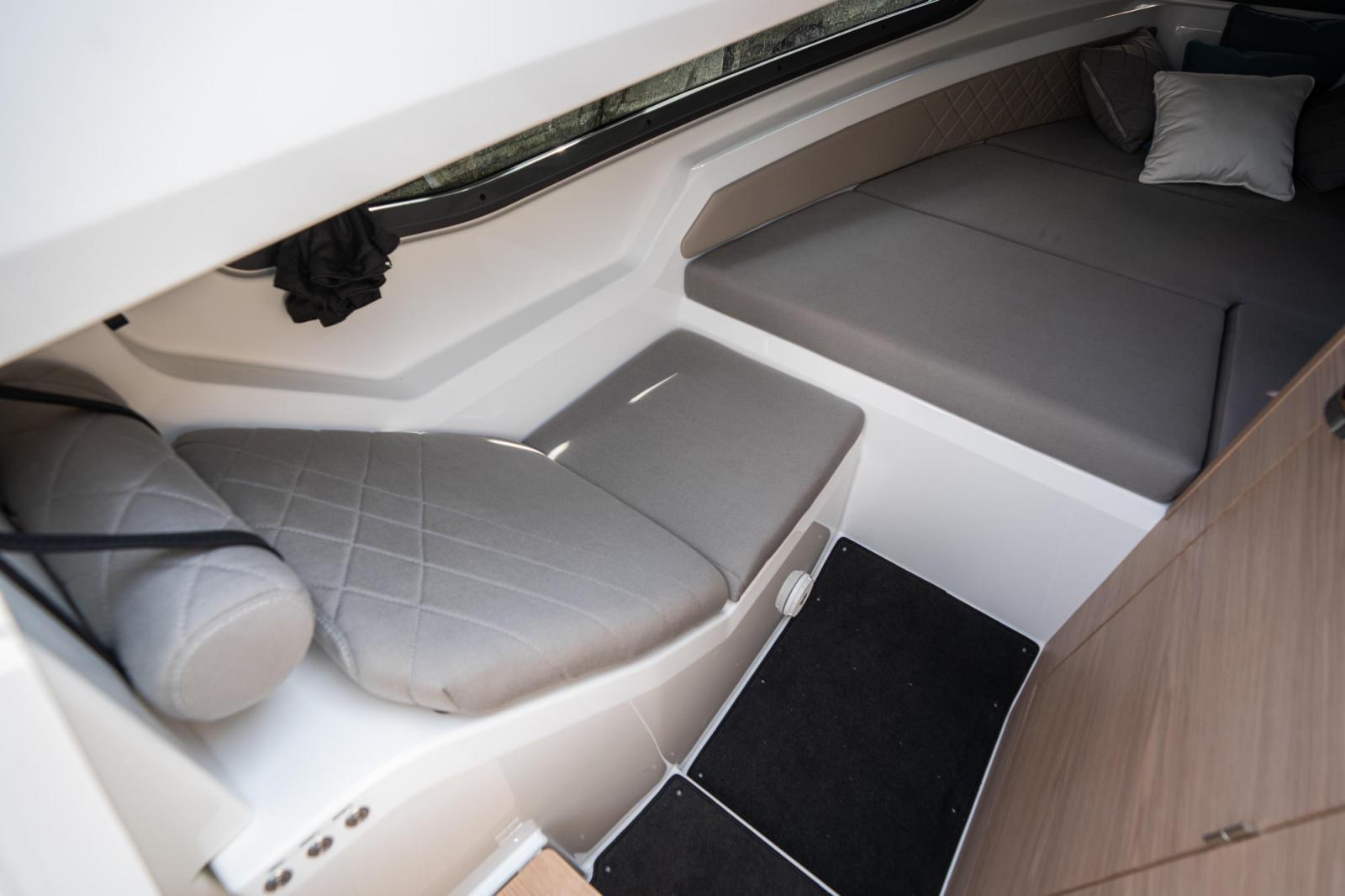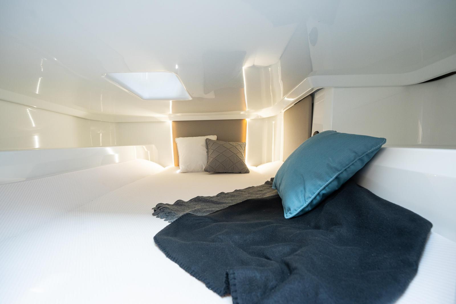 Med detta sagt framstår Yamarin 80 DC som en fullfjädrad bobåt snarare än en daycruiser. På sagda tema har förpiken inte bara ett separat toalettutrymme utan också rejäla ljusinsläpp hör till de förhållandevis rymligaste som skådats. Från förpiken når man också ytterligare en rymlig koj med plats för två vuxna.