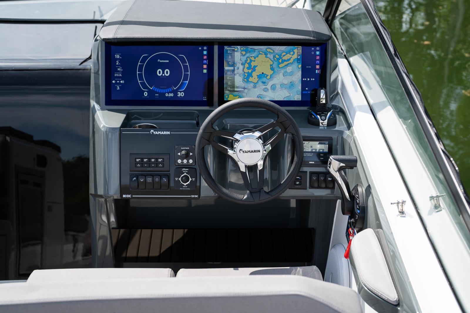 Till det kommer också Yamarin Q Smart Display är en integrerad del av båten, precis som utombordaren, Yamaha F300 V6. Standardutrustningen inkluderar en 16” Q-display med Navionics elektroniska sjökort, och en dubbeldisplay finns som tillval.