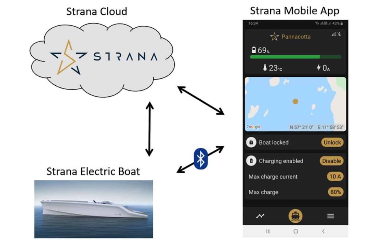 Strana har satsat på en app som håller båtägaren ständigt uppkopplad mot sin båt och där man bland annat kan styra laddningen eller ge access till andra.