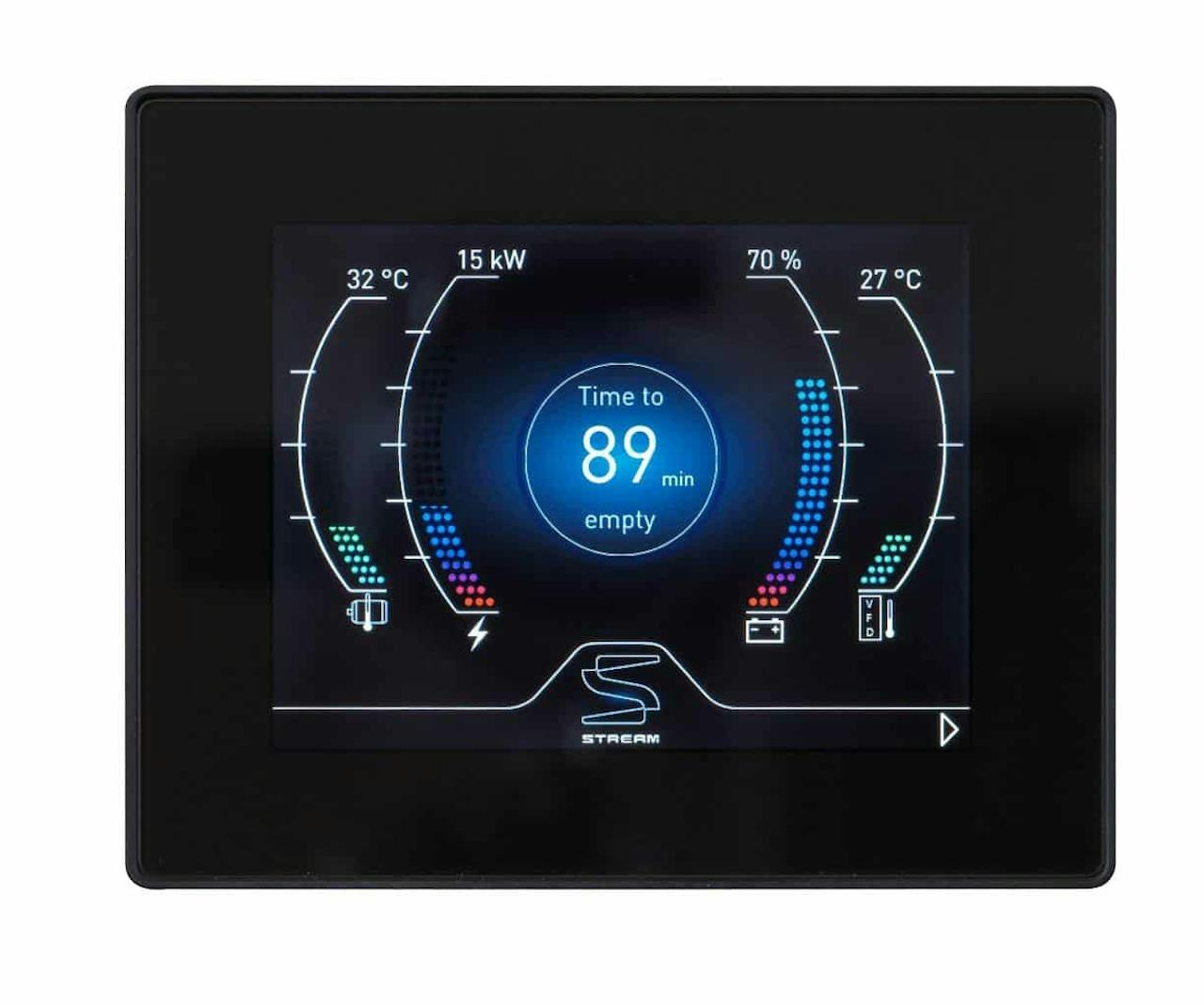 Stream Propulsions standardbatteri är av typen Lithium-Ion. Det har en kapacitet på 25,9 KWH, 96 V/270 Ah, och ska klara 12 000 timmars körning med 2 000 laddcykler. Laddar gör man i ett vanligt 230-uttag med 10A alt 16A laddström. Laddtiden är 12 timmar med 10A (ofta tillgängligt i gästhamnar) och 9 timmar med 16A. Klassning IP67. Vikt 160 Kg. Mått. L x B x H 1 100 mm x 340 mm x 430 mm.