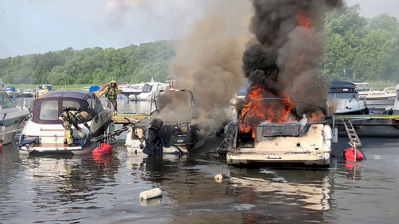 I morse strax före klockan sju inkom ett larm om en båtbrand vid sjöstationen OKQ8 längst in i Islingeviken på Lidingö. Brandkår...
