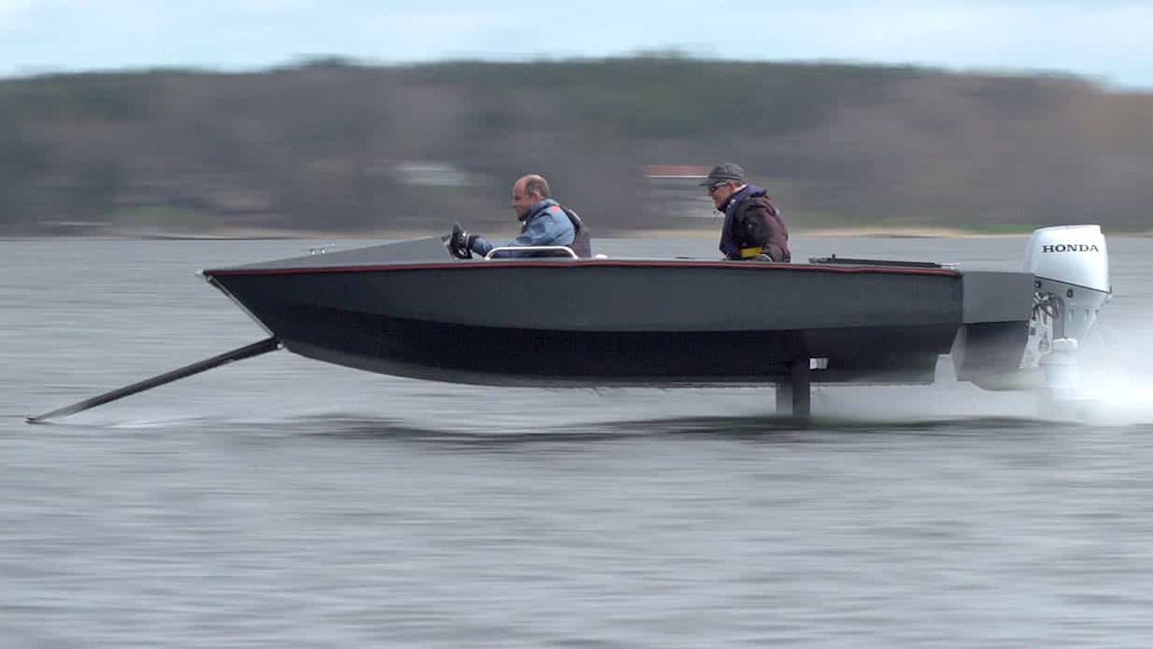 Detta kan vara världens första bärplansbåt som lyckas förena det bästa av alla världar. I fart fälls skroven in och man flyger...