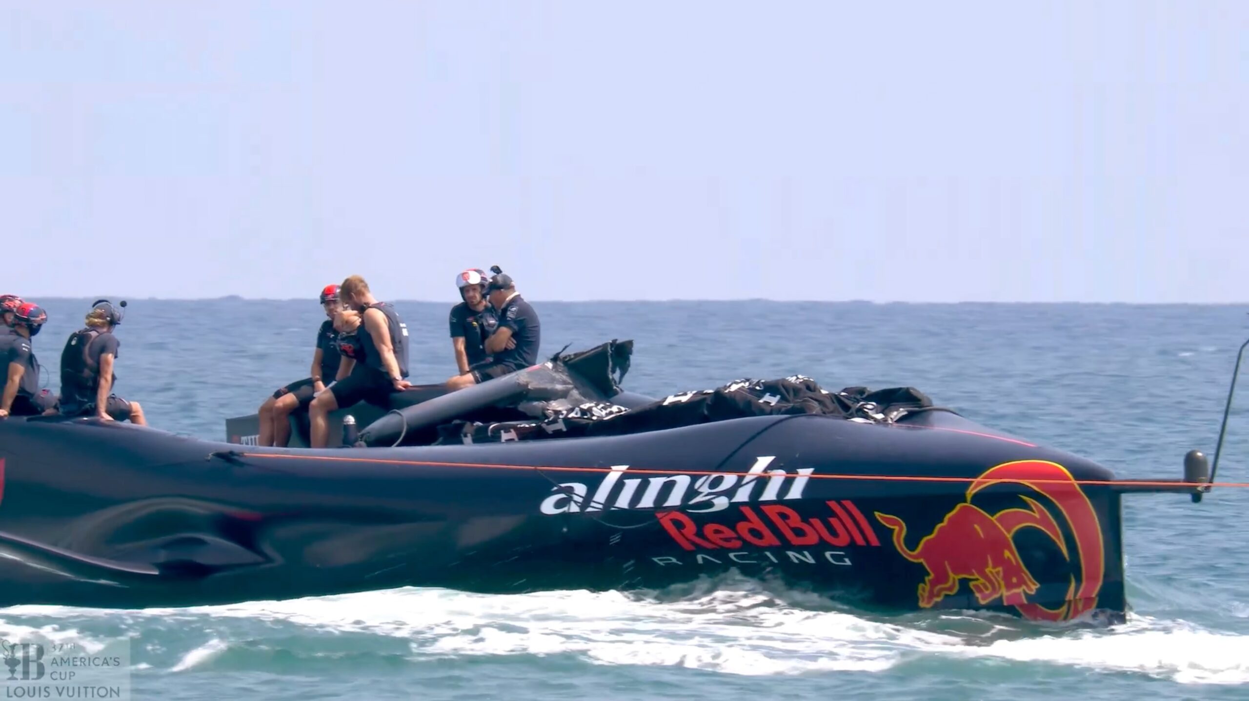 Med endast två dagar till förregattan hände det som inte får hända. Under en träningssession tappade schweiziska Alinghi Red Bull Racings BoatOne...