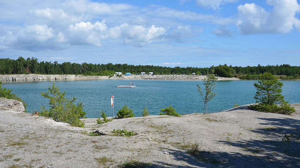 Ett konstgjort rev, eller en lagun av sprängsten och bergmassor från tunnelbanebygget i Stockholm. Det blir grundplåten till en ny skyddad miljö...
