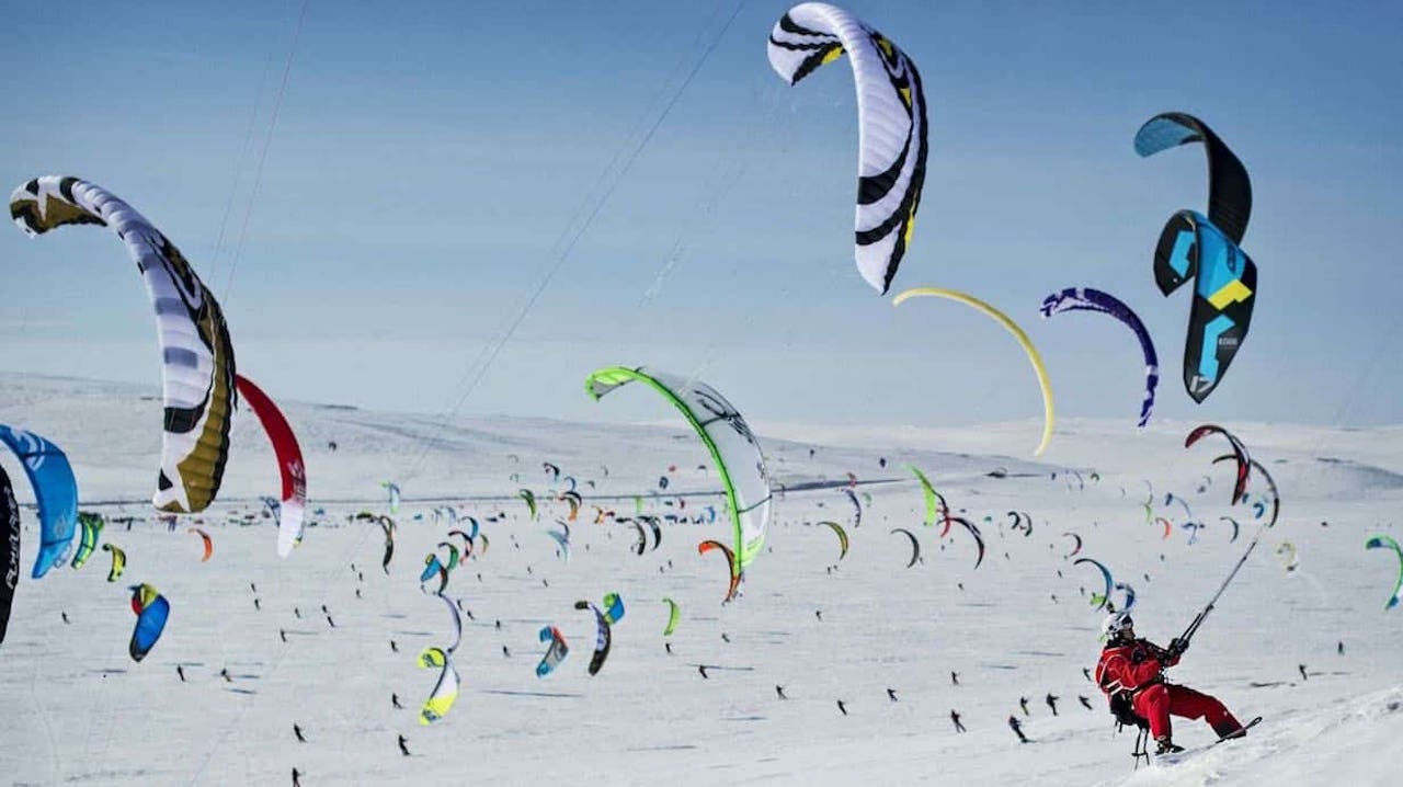 Att kitesurfare byter surfbrädan skidor eller snowboard på vintern är inget konstigt. Men bara 300 av dem drar till Hardangervidda i Norge...