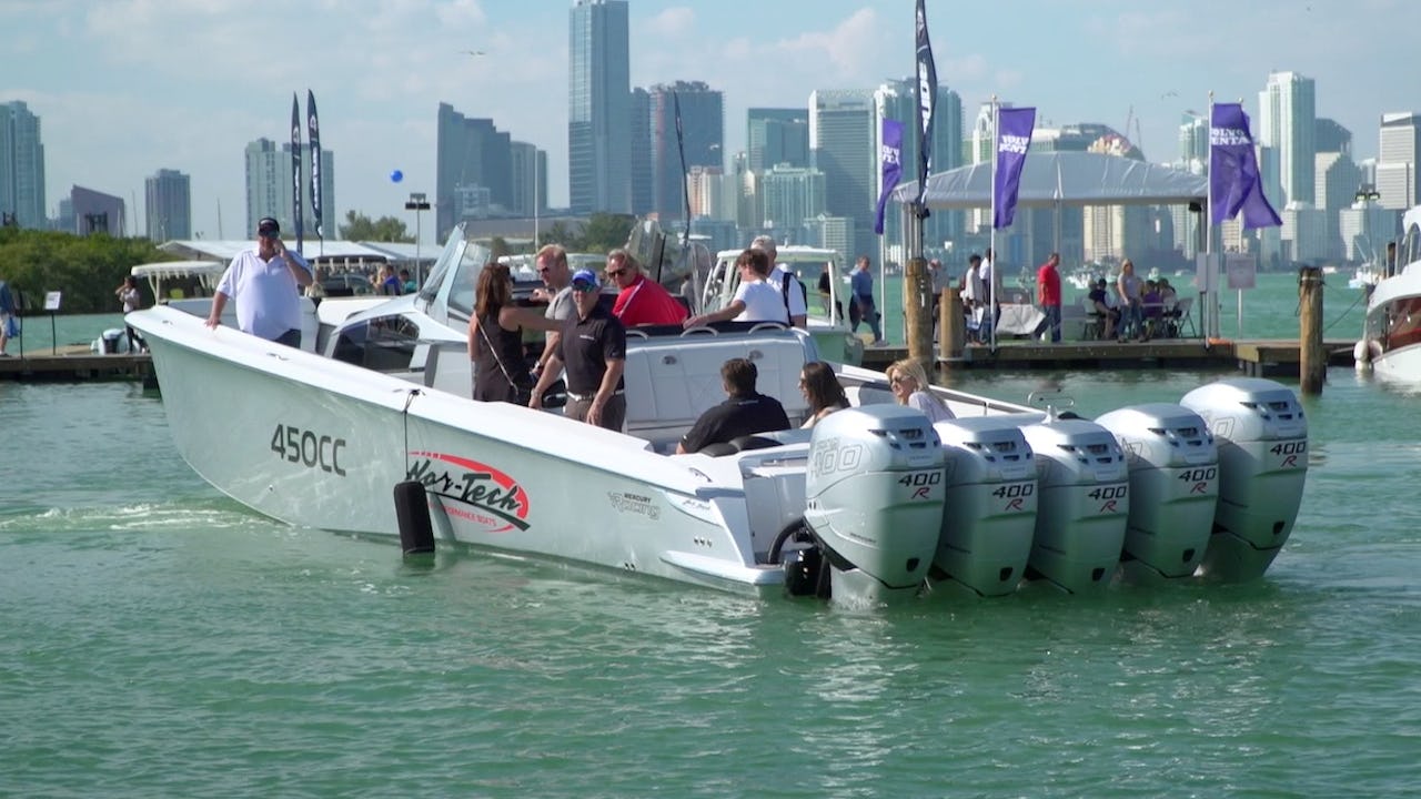 Norska Nor-Tech är de enda på Miami Boat Show som lyckats hänga på fem utombordare á 400 hk. I den här videon...