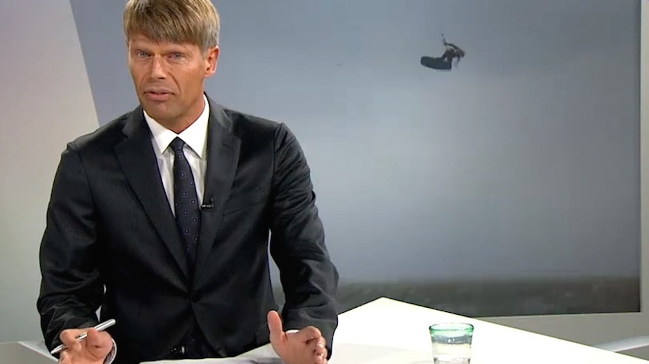 Dansk tv rapporterar om hur en stark kastvind gav en 27-årig kitesurfare så mycket luft under sin vinge att han flög 200...