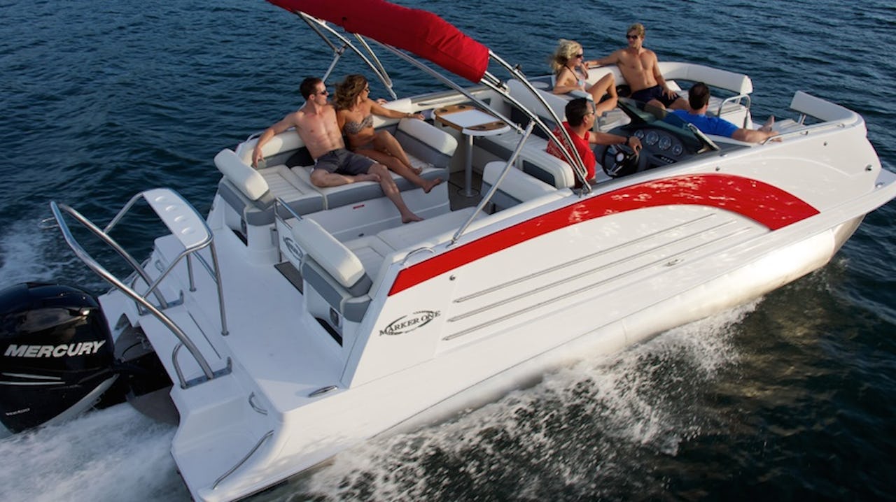 I jakten på märkliga flytetyg zoomar vi här in Marker One 25. En partyplattform ovanpå tre pontoner. I reklamen sägs det inte...