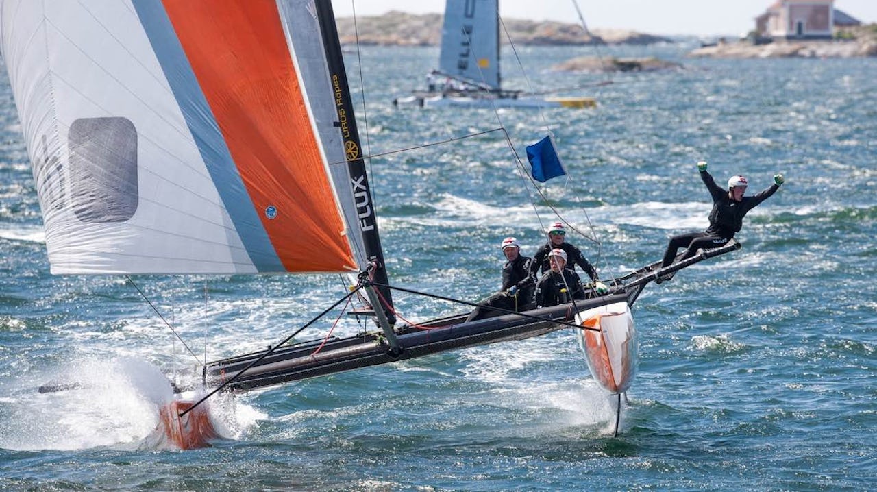 Andra dagens två seglingar avgjordes i riktigt tuffa förhållanden. Anton Dahlberg/Fredrik Bergström gjorde sin livs hårdvindsinsats och seglade upp sig ordentligt. Bara...