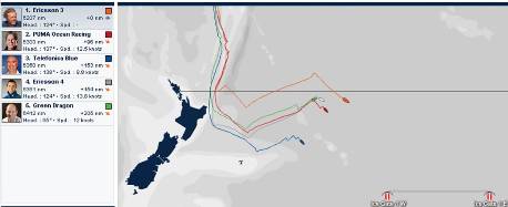 Volvo Ocean Race Ericsson 4 var först. En halvtimme senare passerade Ericsson 3 som andra båt scoring-gaten under femte etappen av Volvo...