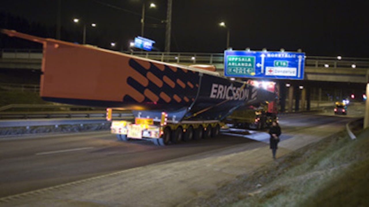 Sex meter bred och 21,5 meter lång, från Kista till Frihamnen i Stockholm under Luciadagens kväll.”Ericsson 3” är klar för transport till...