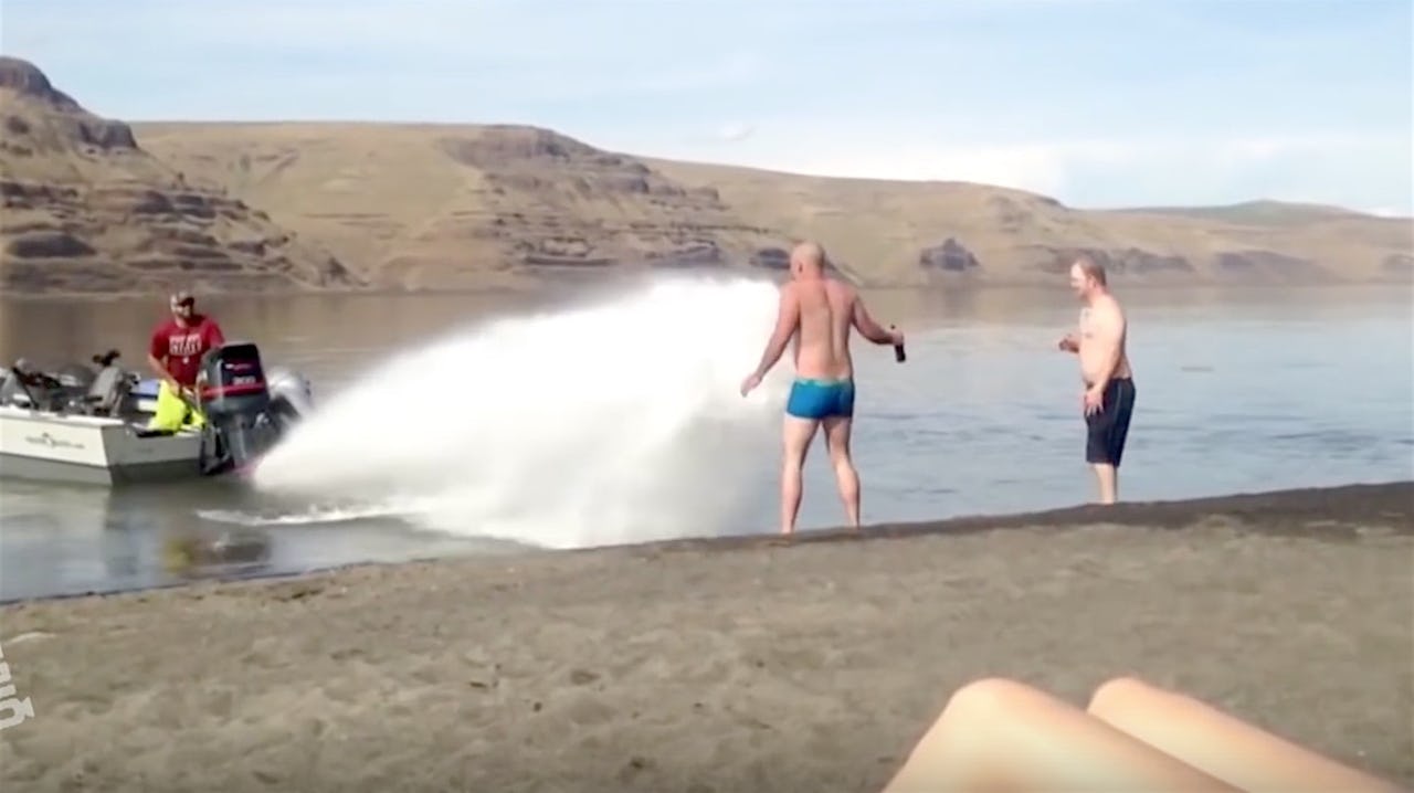 Mannen på bilden ska just få sin livs överraskning i form av en stenhård smäll. Den här videon visar att man inte...