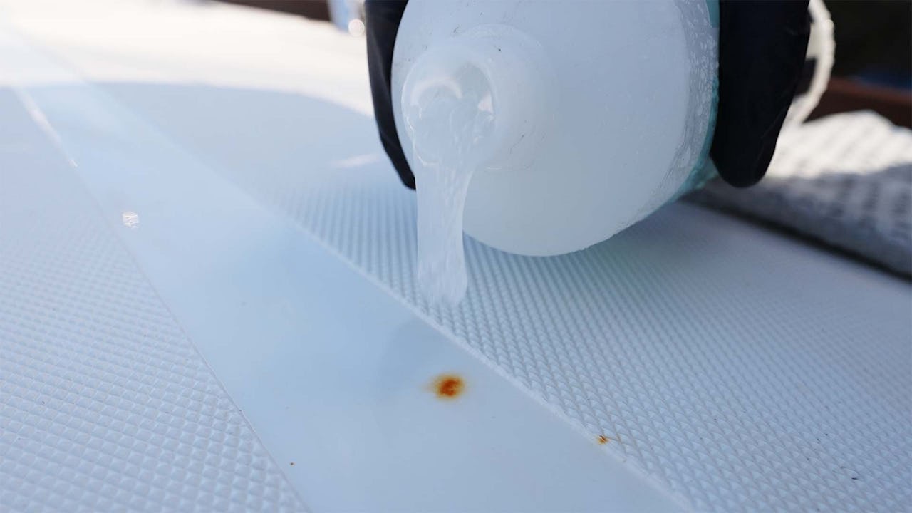 Del 2. Gulnat skrov och missfärgad vattenlinje är ett gissel. Här visar Skippos Gustav Morin och båtvårdsexperten Mathias Uddfors hur oxalsyra –...