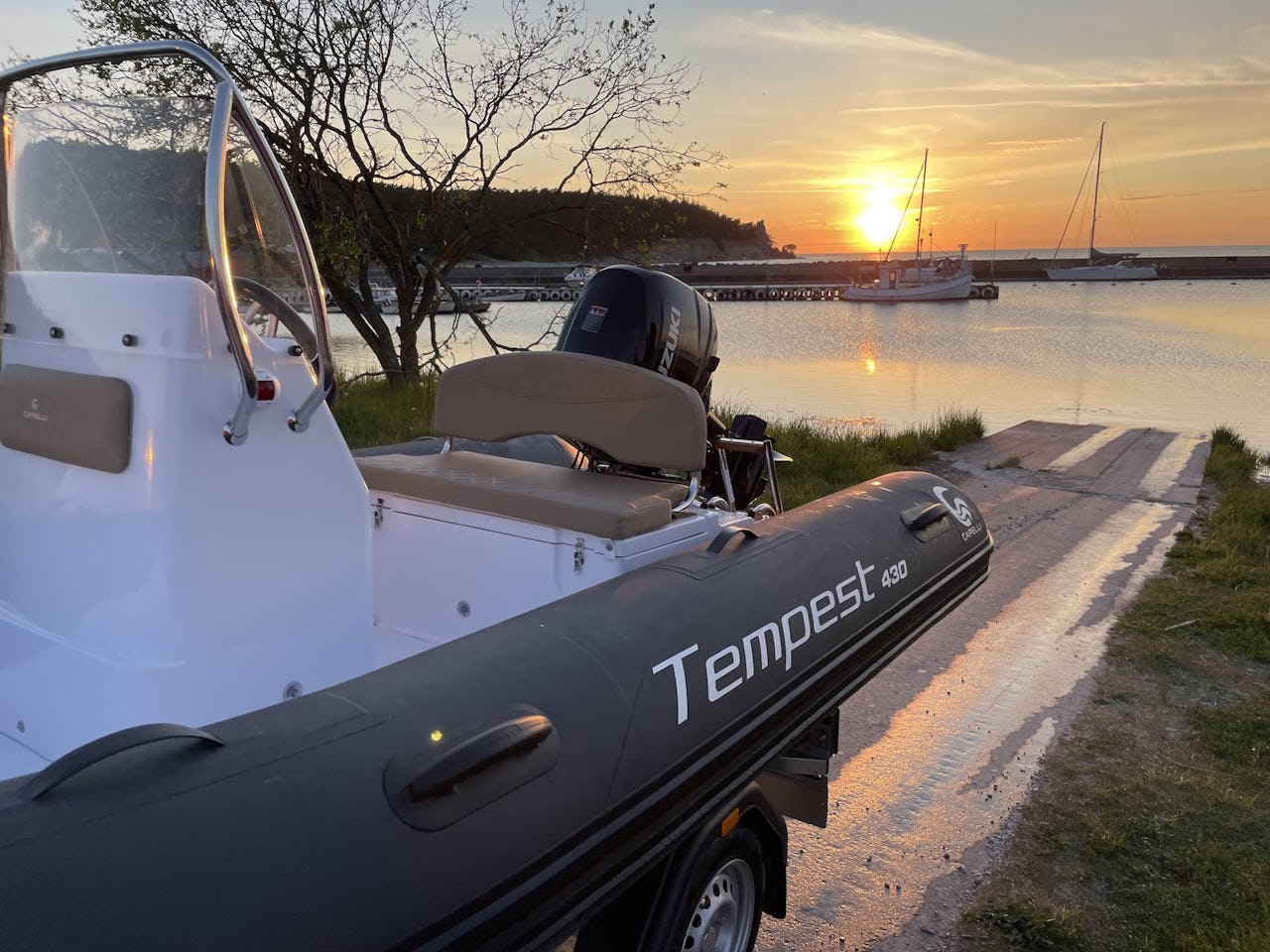 – Det är en Capelli 430 Tempest med en 30-hästare där bak som redan har visat sig vara fantastisk för ändamålet. Lätt att sjösätta, torrsätta och traila men också precis så härligt stabil som RIB:ar kan vara. Sedan, hör och häpna, räcker 30 hästkrafter alldeles utmärkt med två personer ombord.