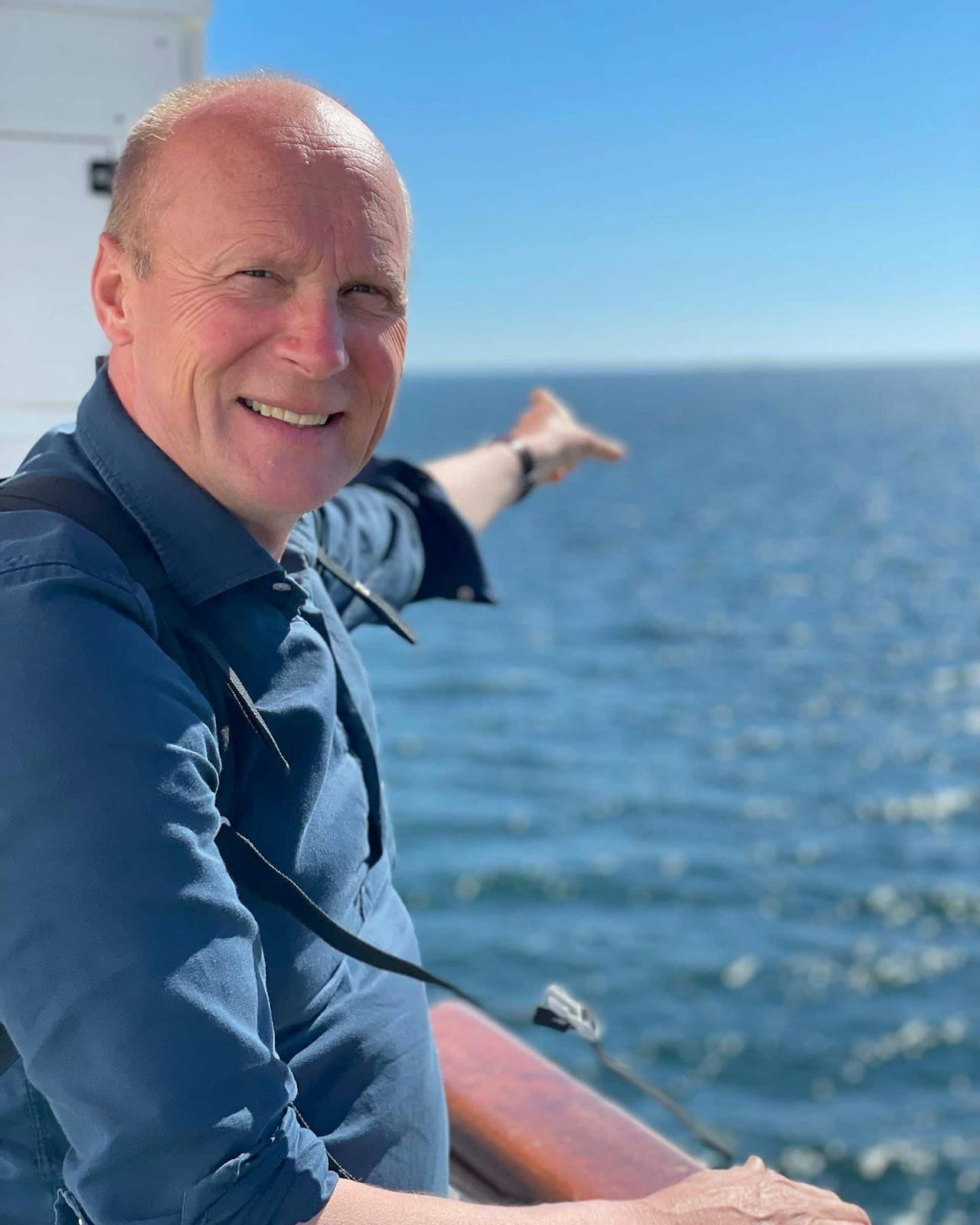 – Jag vann äran att få ta båten istället för Claes gamla Land Rover, vilket inte vill säga lite. Det blev en fantastisk resa i solnedgången i lagom mycket sjö och lagom…