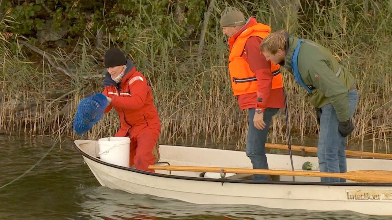 Skippos besättning har sällan varit ute på så djupt vatten som när de här försöker fånga kräftor med alltifrån döda fiskar, grönsaker...
