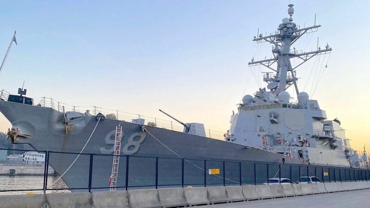 Amerikanskt krigsfartyg bunkrar i Stockholms hamn