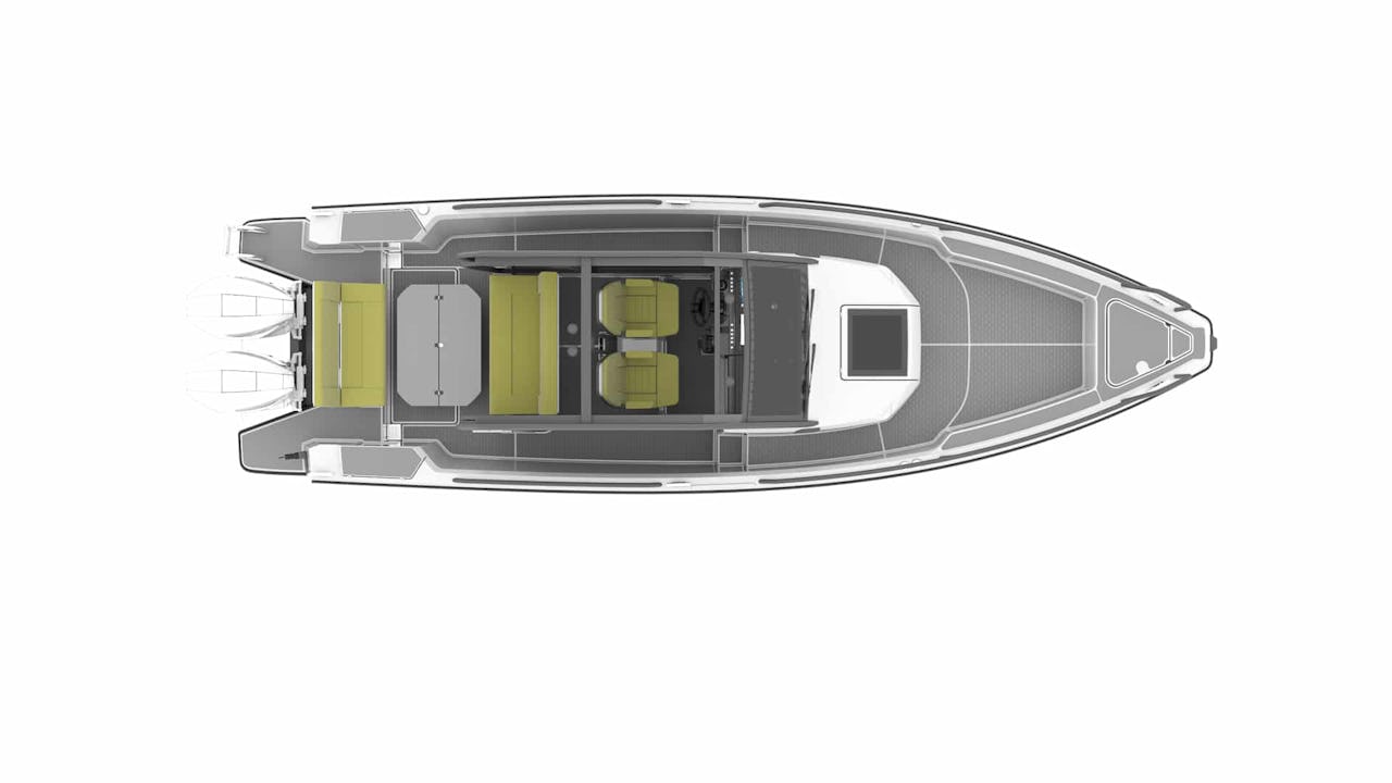 Toppfarten uppges vara 50 knop med två Mercury 225 hästars V6:or.