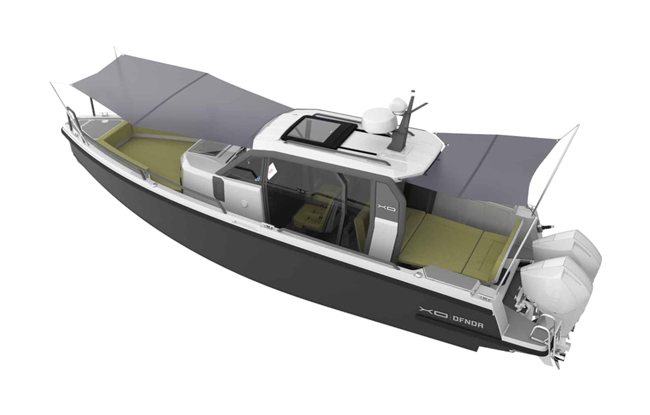 XO Boats ser nya DFNDR 9 som en båt för den mer aktiva båtägaren, som gillar vattensport, fiske och andra äventyr. Samtidigt som bekvämligheterna finns på plats. DFNDR 9 är kanske båten för familjen där båtlivet står för olika saker, solbadande och djuphavsfiske kan ju kombineras.